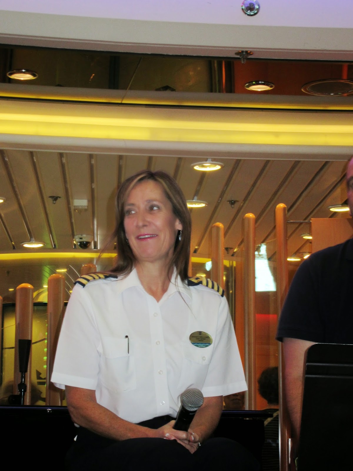 Back to Wendy. She also comes from Vancouver Island and has been with RCCL for 12 years. She came to the company with the rank of 2nd Officer and has worked her way up to Captain. Her background is from commercial fishing boats (like Deadliest Catch boats) and also on uba rich private yachts.