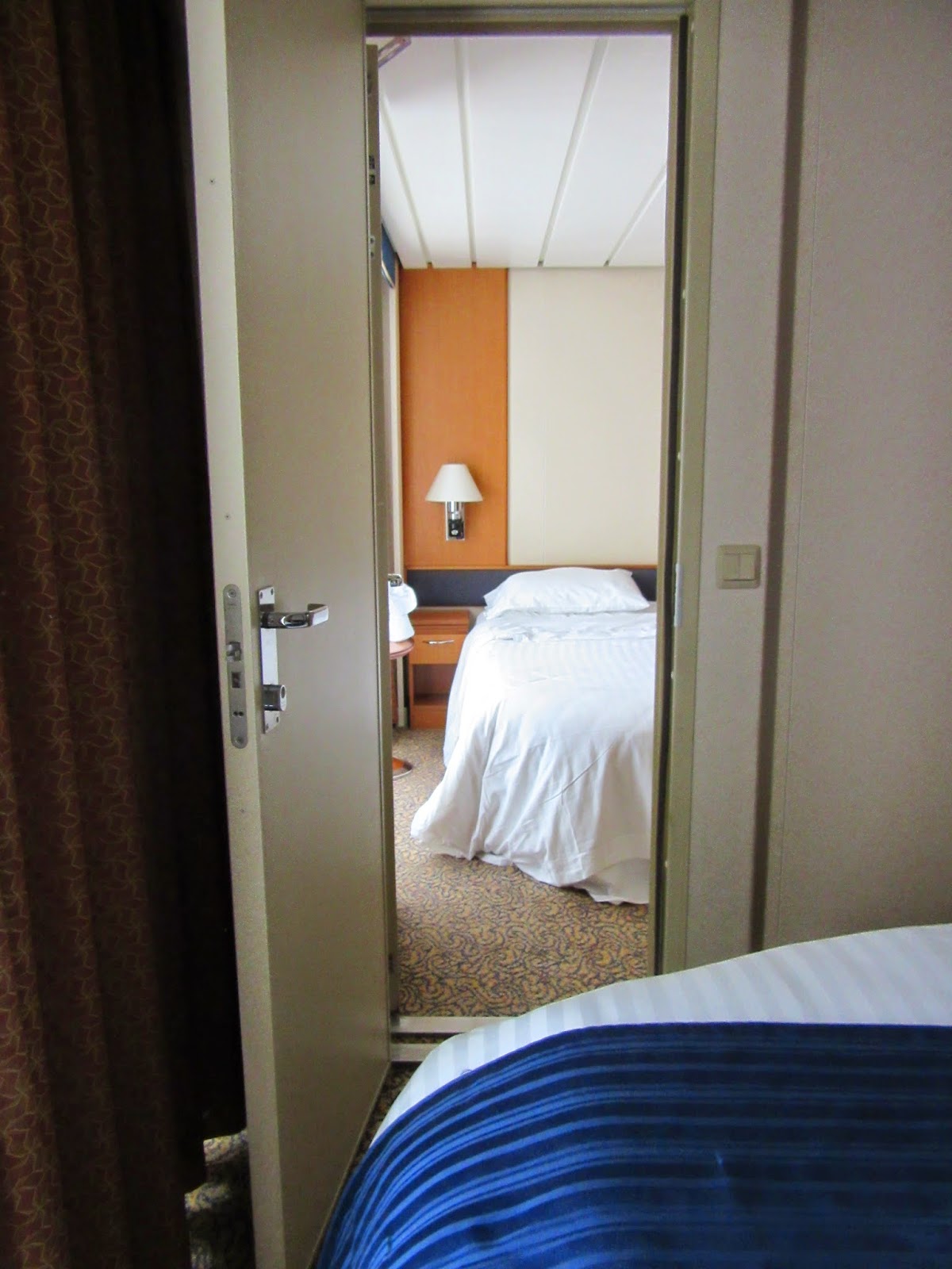 Our rooms are E2’s with a connecting door. The door is down near the balcony so is not in the way but allows us to chat, walk through etc. Very handy!