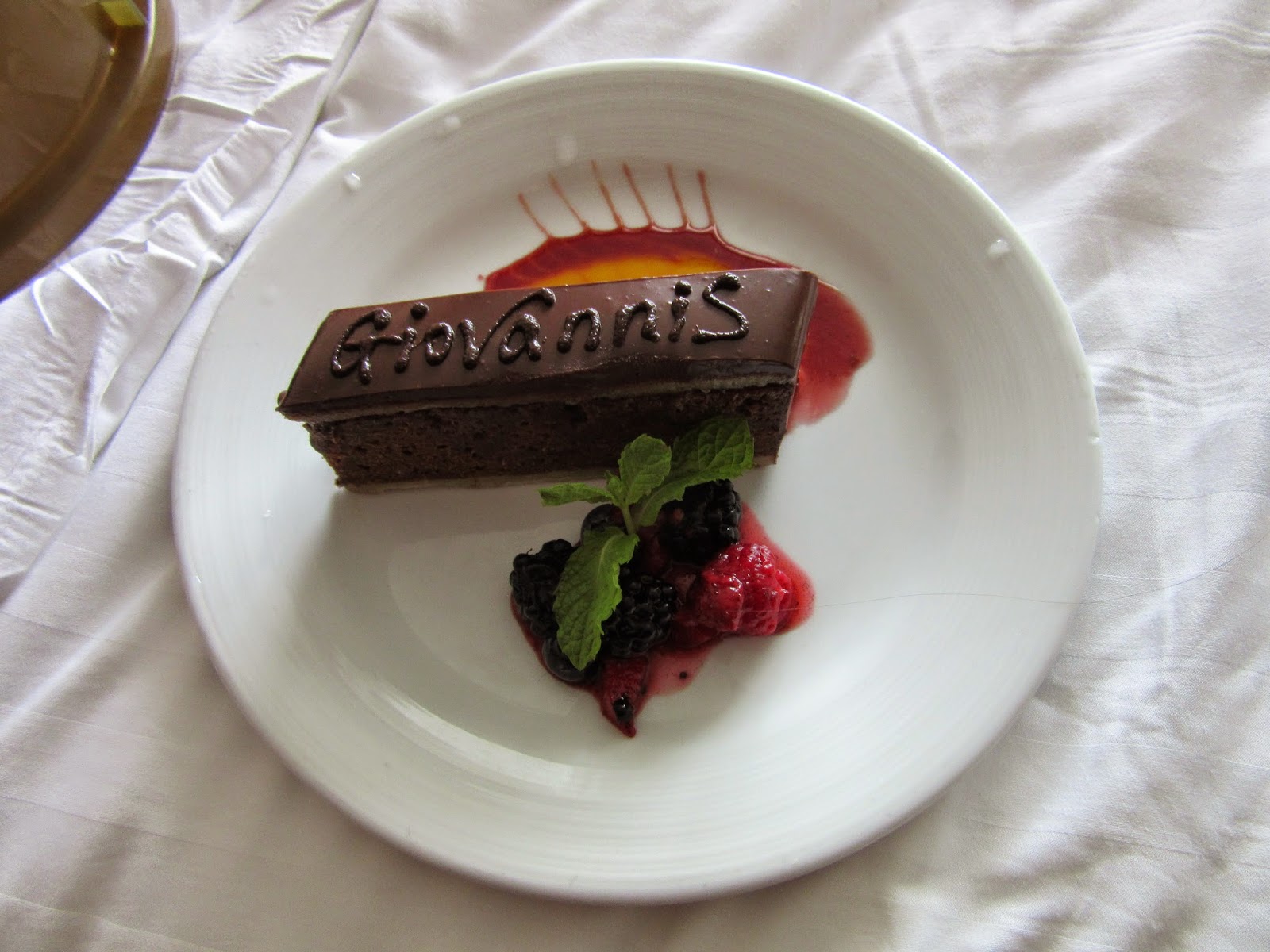 It was a gift from Giovanni’s Table – a super fancy chocolate desert! Yum.. It would have been rude not to eat it!!!
