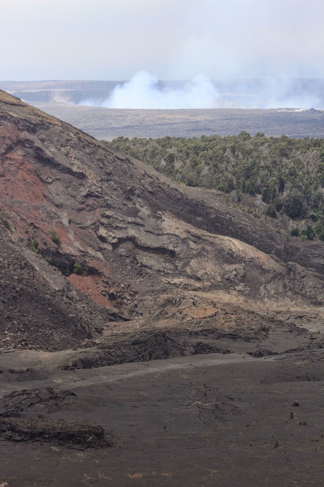 We then drove along the Crater Rim Drive. It used to be a ring road around the volcano. But after the expansion of the volcano there is a horse shoe road with a huge area of the park out of bounds.