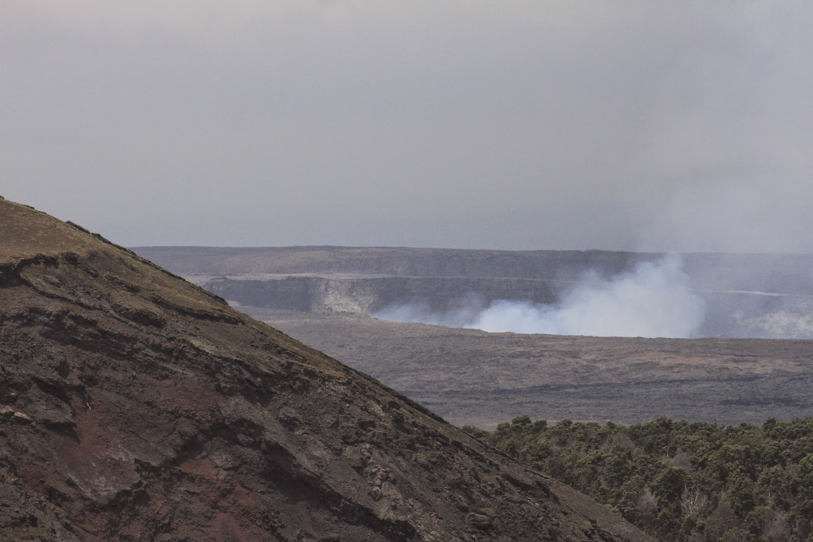 We then drove along the Crater Rim Drive. It used to be a ring road around the volcano. But after the expansion of the volcano there is a horse shoe road with a huge area of the park out of bounds.