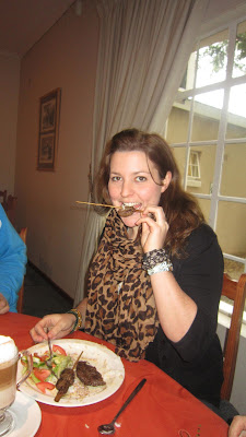 Then after this fantastic ride we went and thanked the ostrich by eating its buddy. We had an ostrich steak and K-bab. It was delicious, a weird meat somewhere between chicken and beef. Something I would eat a lot of if it were available at home.