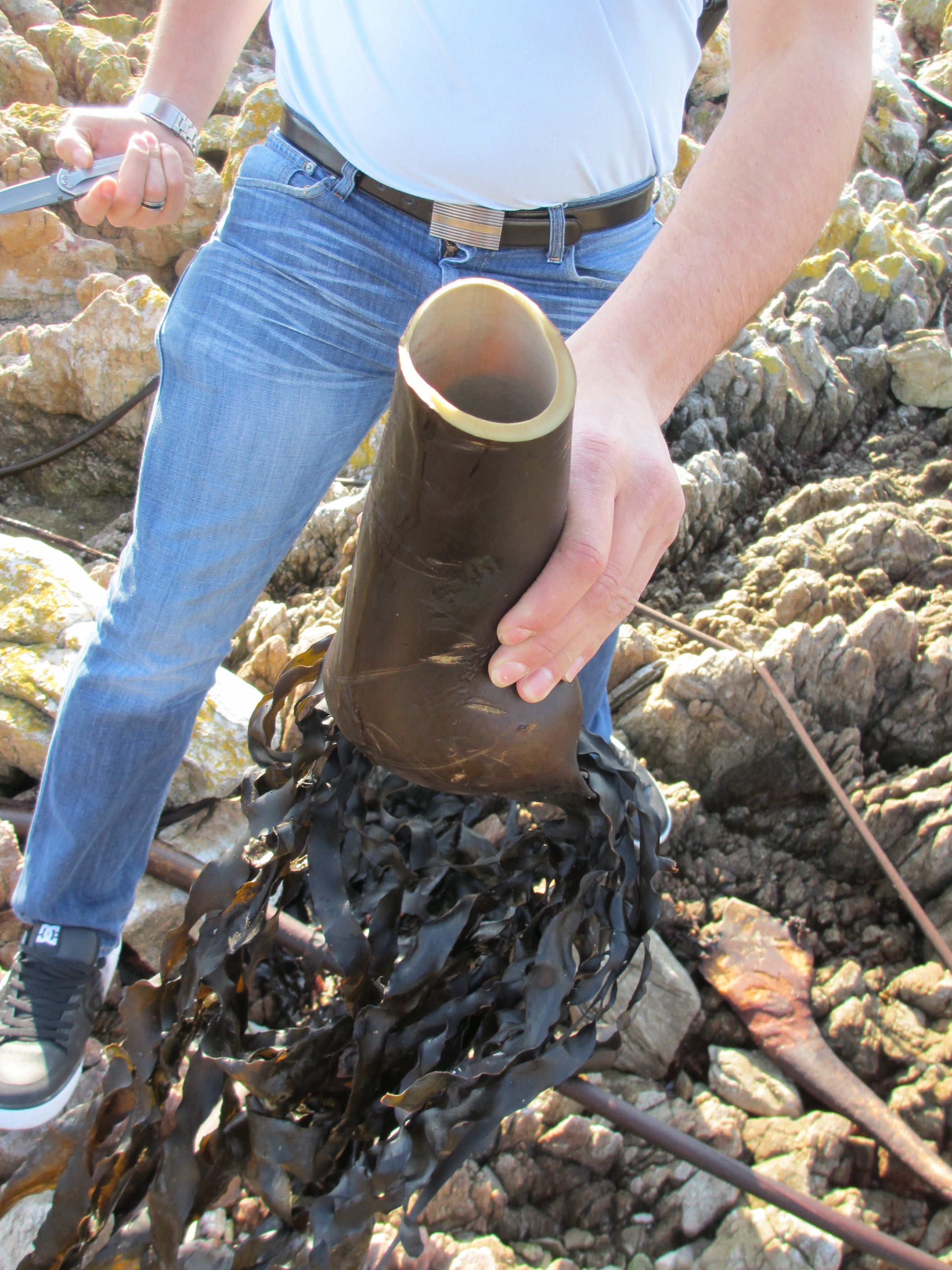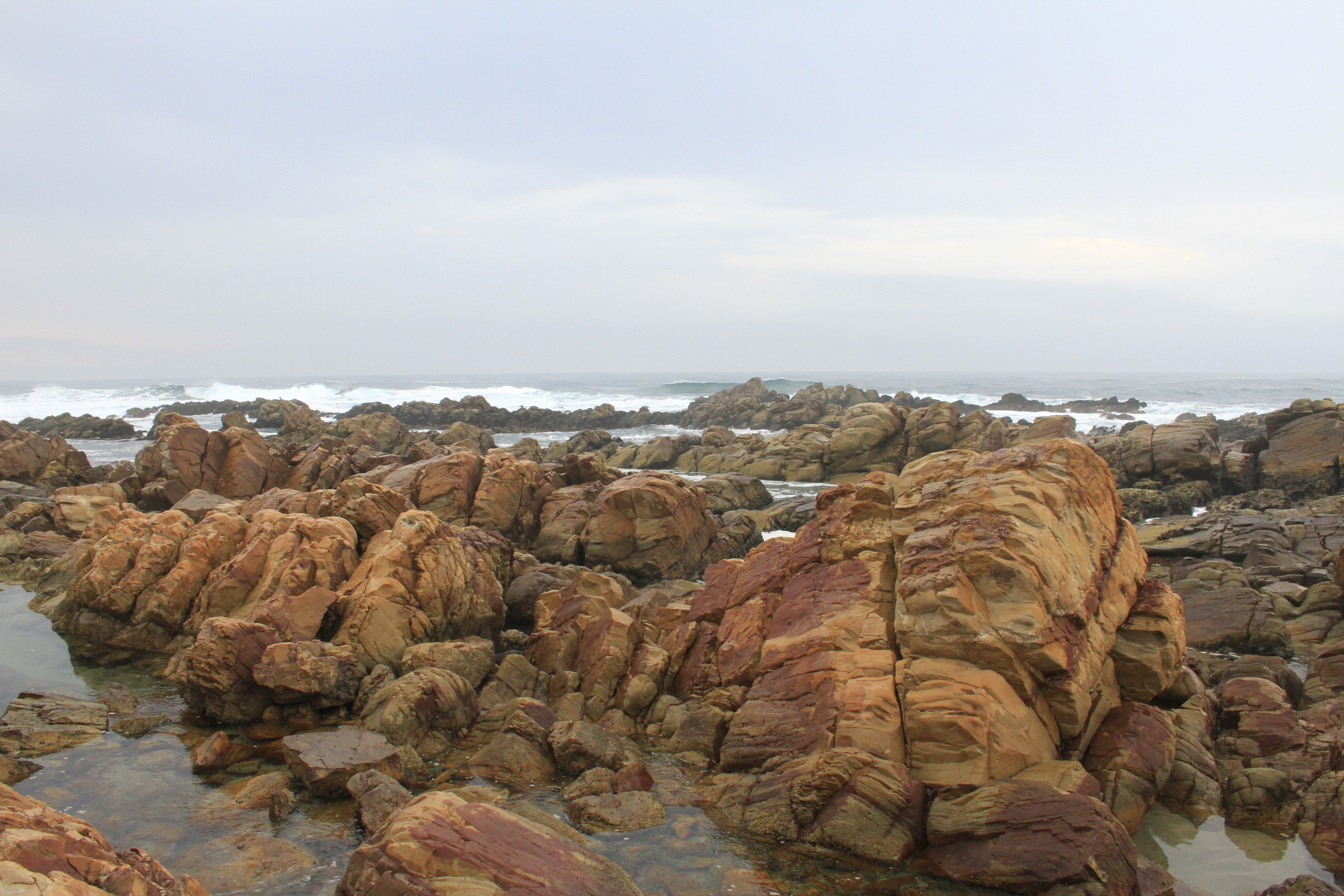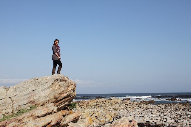Our first stop was a gorgeous peninsular where Wynand and Sarah walked far out on to the rocks and explored the rock pools and rock formations. We all had a great time taking photos and (for Sarah) posing like an explorer atop mountainous peaks. The rocks were strewn with bull kelp that had washed up and was in various states of drying up.