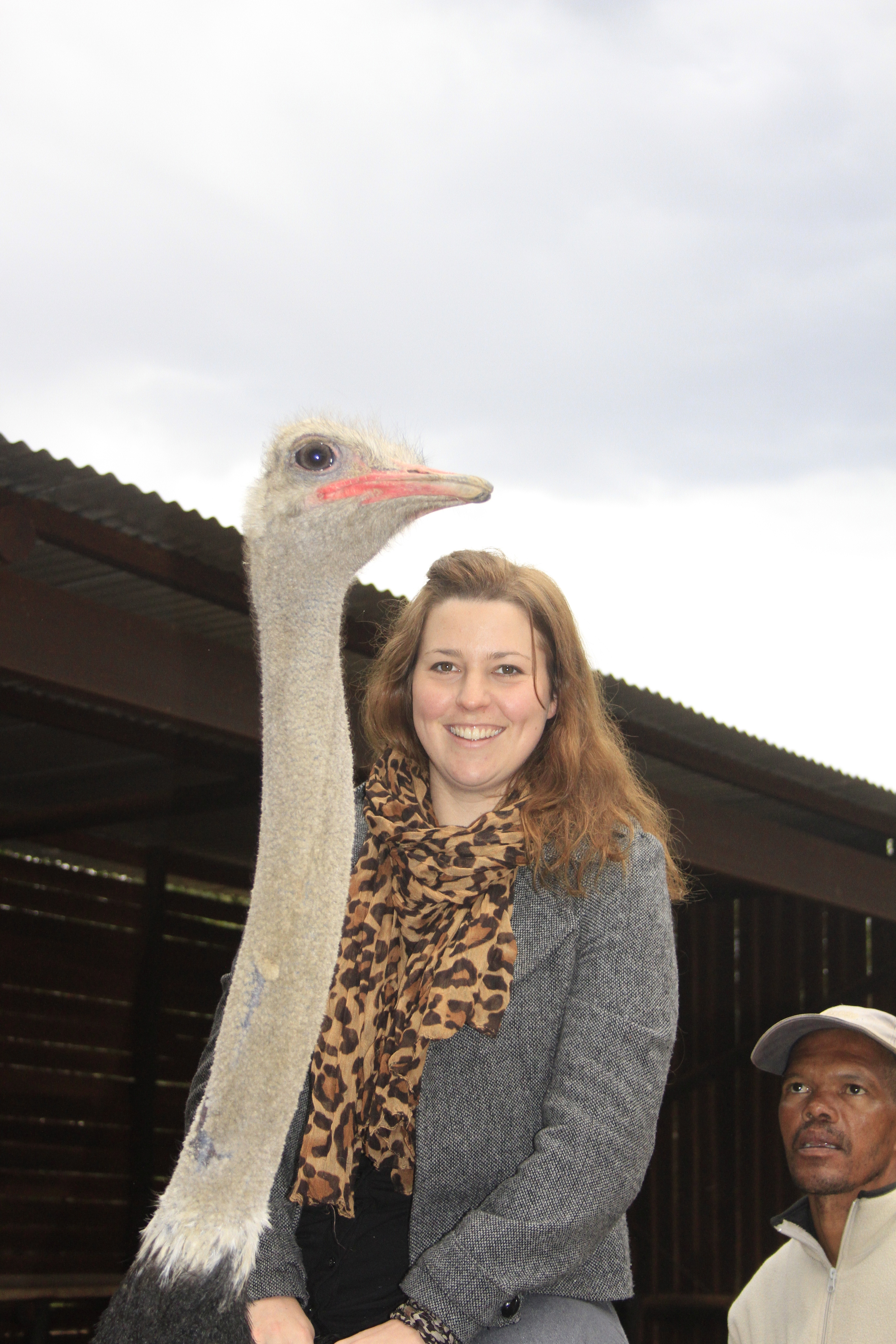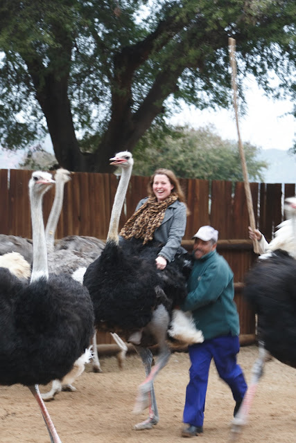 Now for the best part. Sarah got to ride one! She was admittedly a little apprehensive about the prospect because ostriches really don’t look as though they have been suitable to be ridden (as horses are).