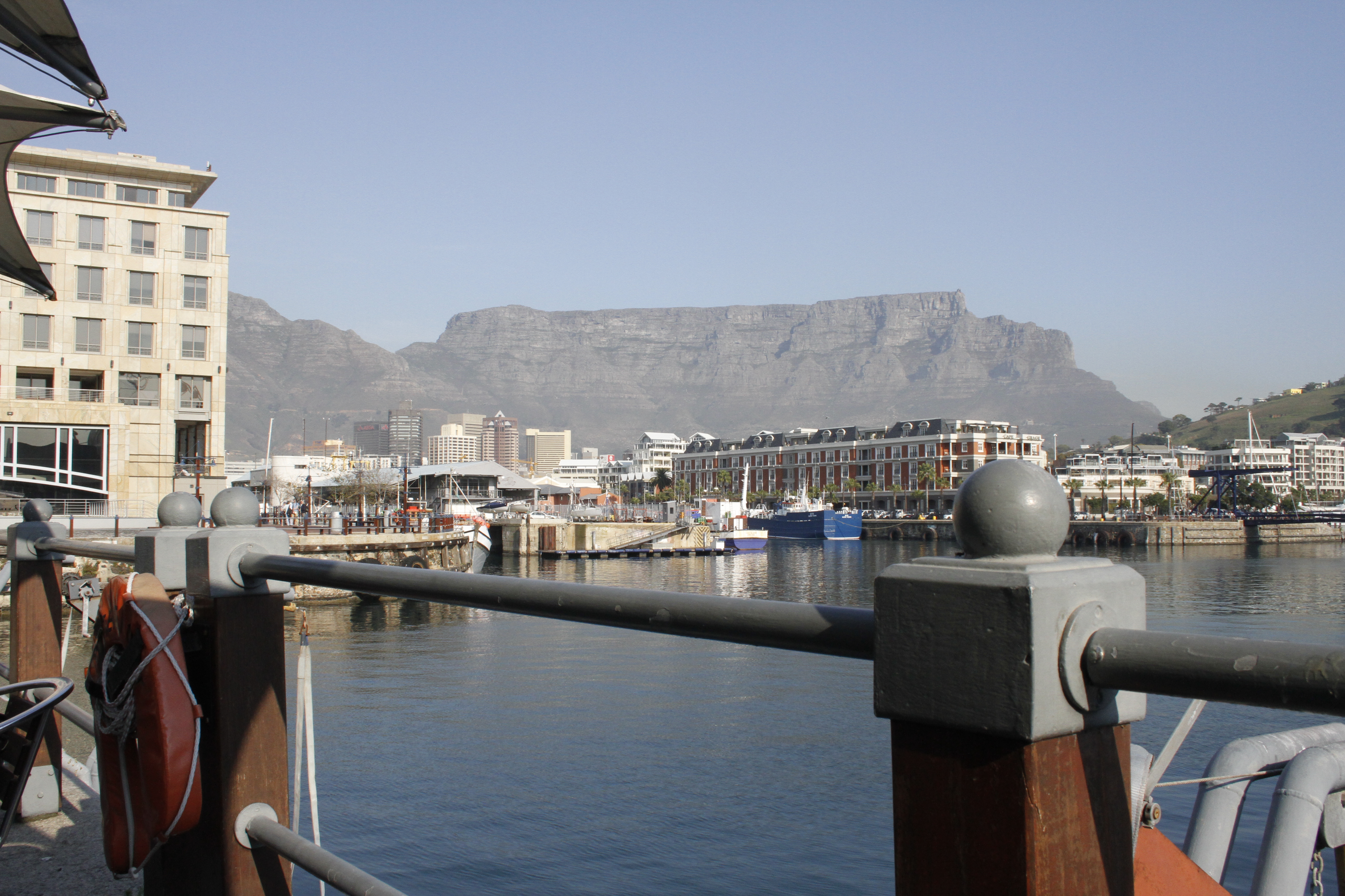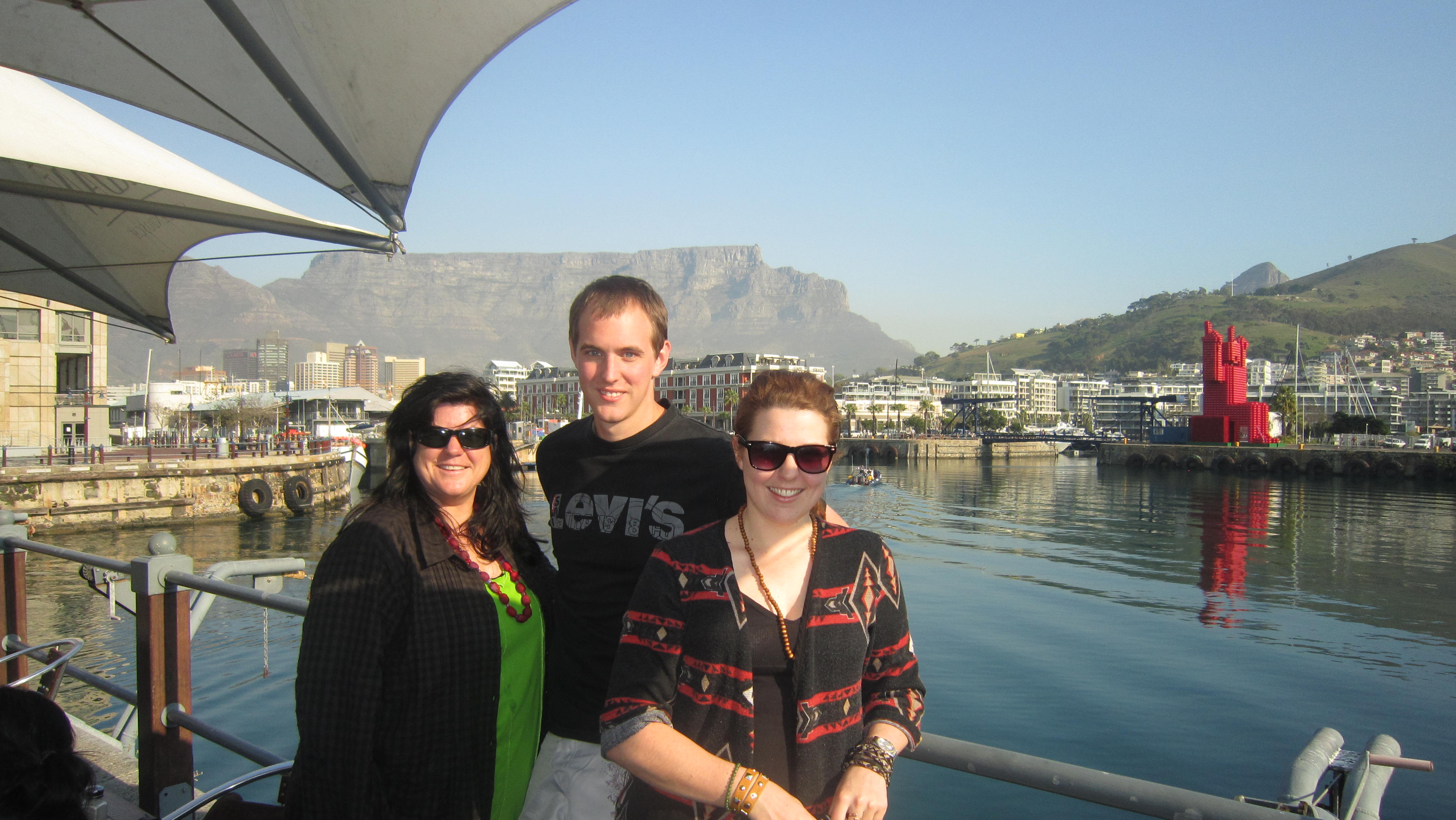 We then made our way back down to the Waterfront district. Like most modern cities on the coast, Cape Town has a stunning waterfront. Buskers, heaps of people trying to sell their tourist junk, beggers, street people, tourists and locals. We went to a lovely Belgium Beer Bar and had a coffee. Well, Sarah had coffee and was happy. Raina had a Belgium Berry Beer. Yum. It tasted more like fruit juice then beer and was very refreshing – but also like a fruity cocktail. Lovely mix.