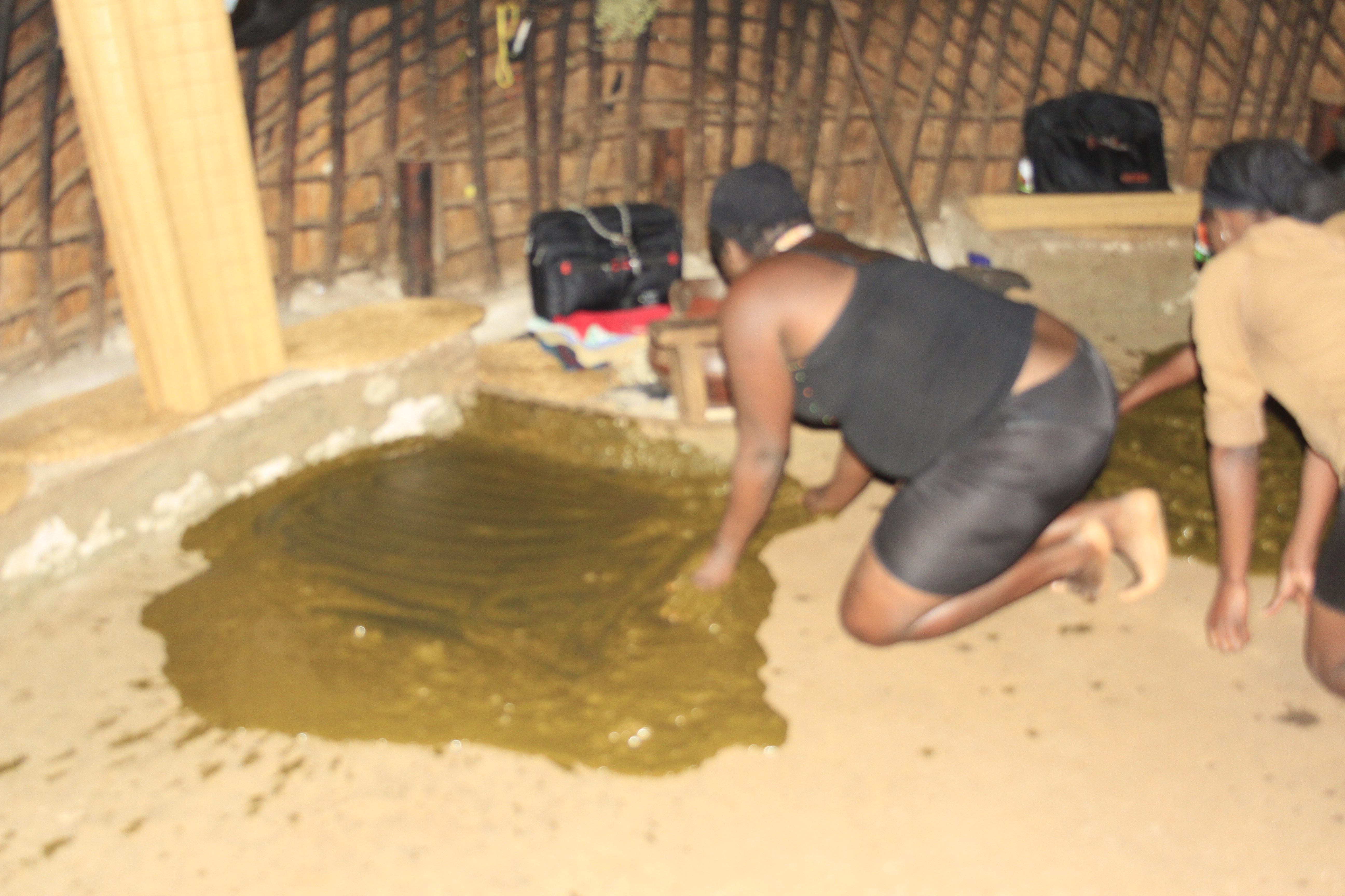 The floors are treated with cow manure. It dries hard into a sealer. Bit stinky till it dries.