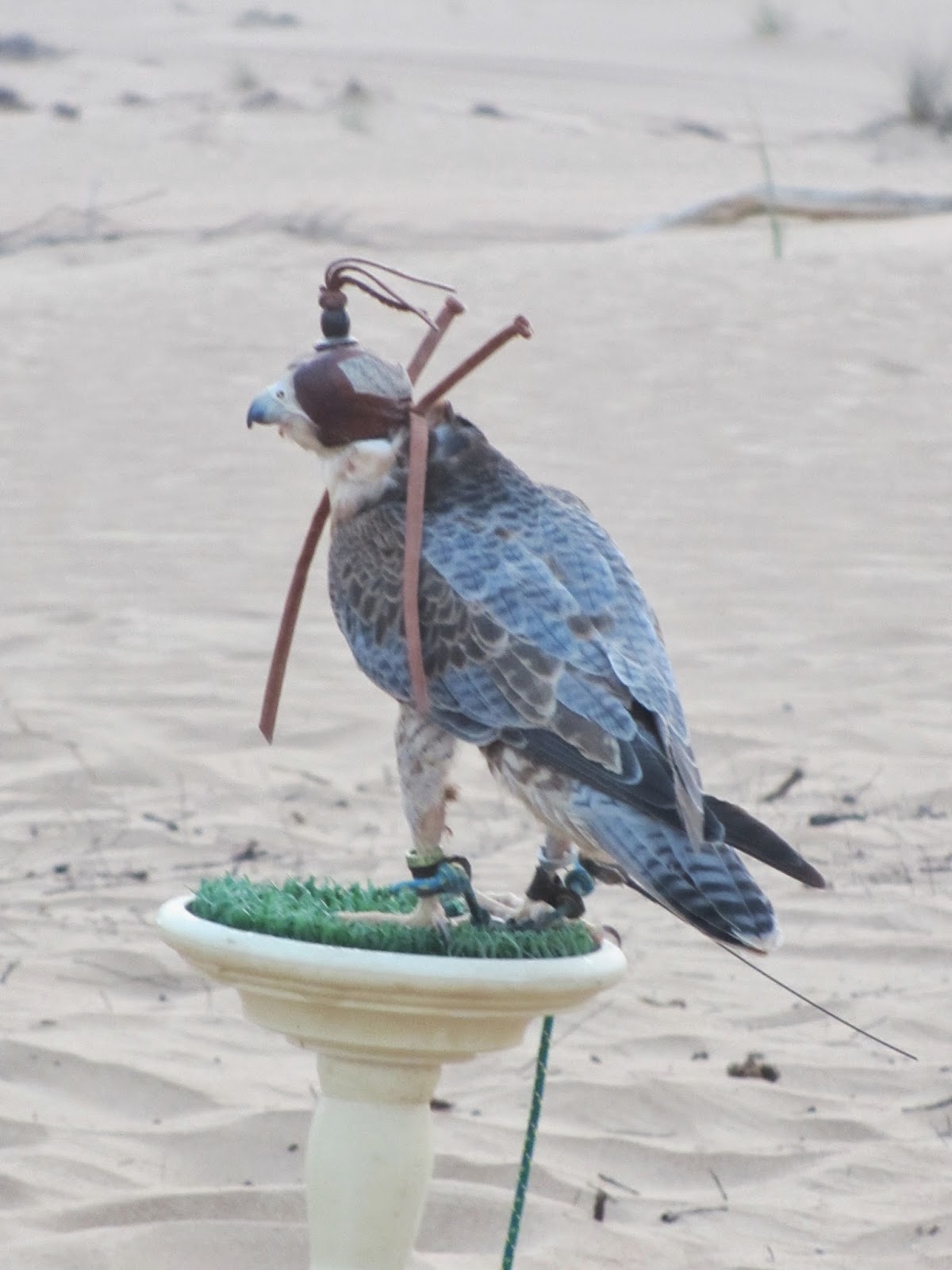 And it was very interesting. It really is the sport of the rich and famous. Hawks only travel through the area in September October. The rest of the year is too hot for them. So the Sheiks catch them during that period. They catch them by catching quail, pigeons etc, plucking out the flight feathers, strapping a ‘backpack’ onto them containing a tangle of string and then throwing them out at passing hawks. The hawk goes for the struggling bird and as it hits it the well pack backpack pops open and tangles the bird. He then spends around two months ‘training’ the bird.