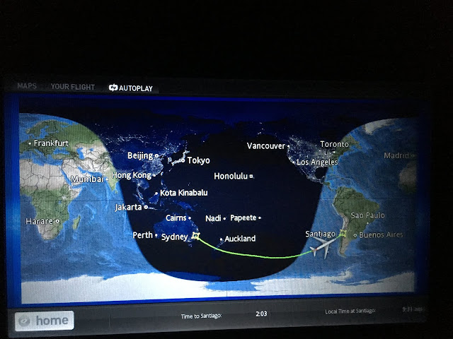 But then onto the flight to Santiago, Chile. I have never paid for extra leg room before. I did for this trip and was not disappointed. Huge space – and sat with two lovely Aussies.