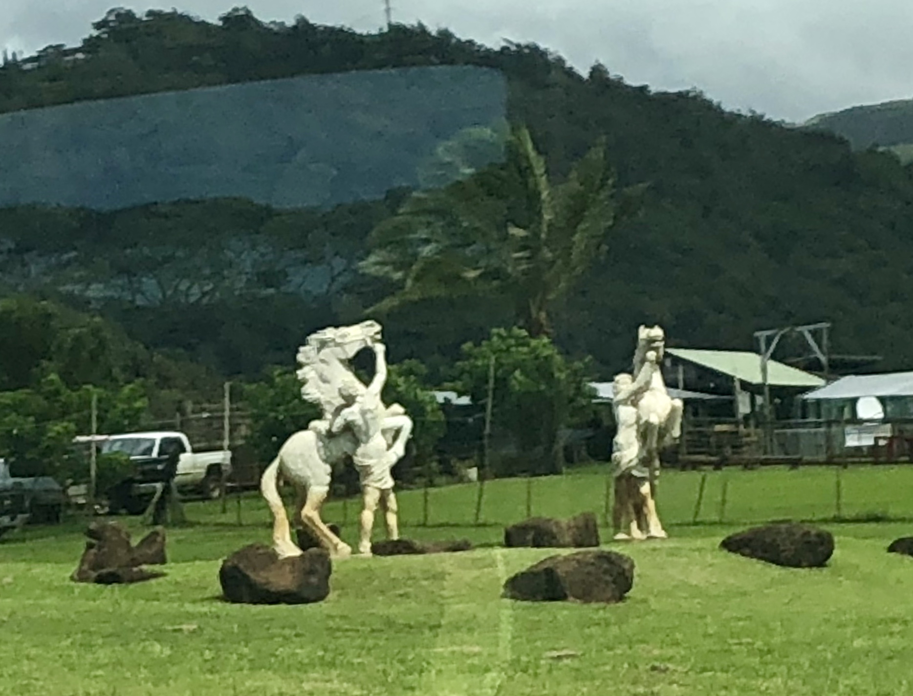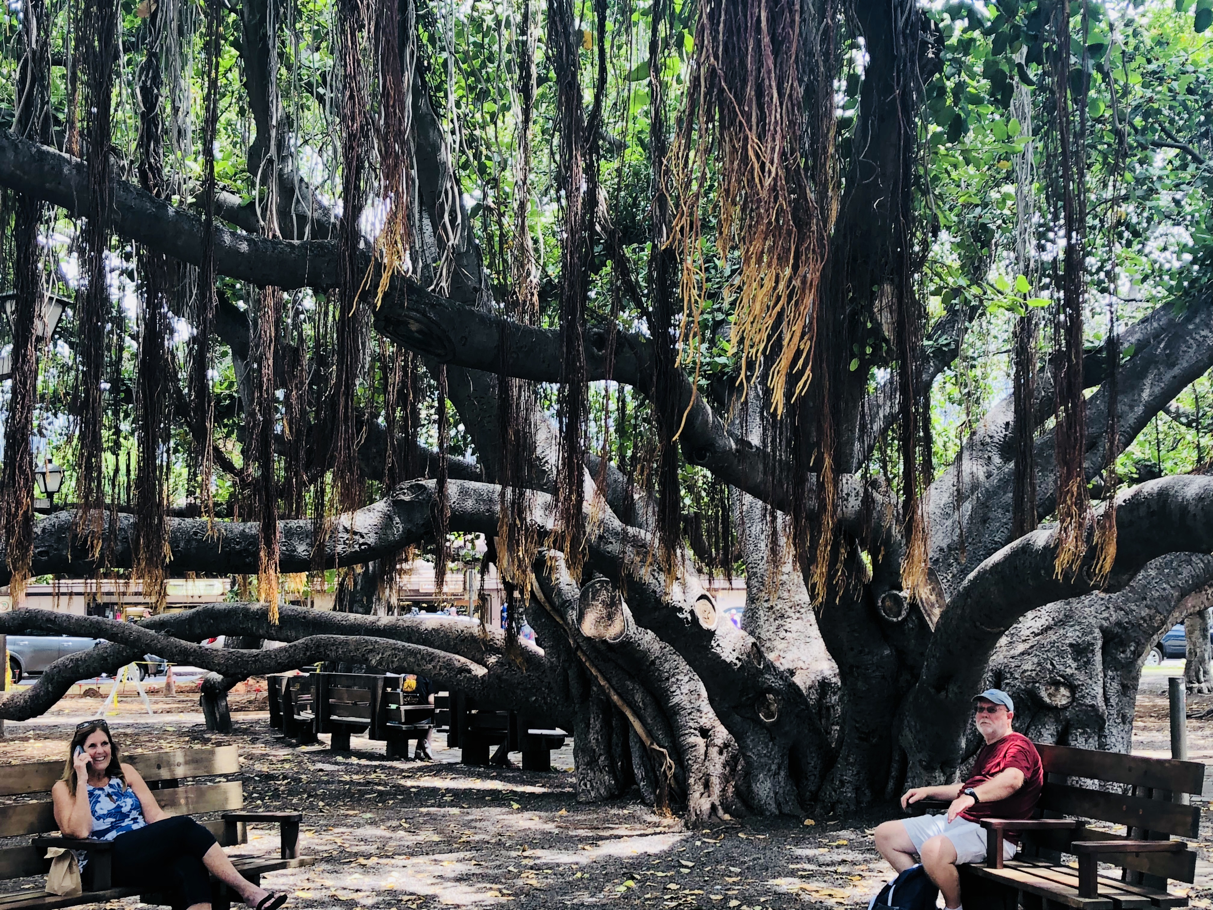 A tiny church where John Wayne was married to Pilar were married under these two arched banyan trees in Hawaii. King Kamehameha was also said to be born on this property!