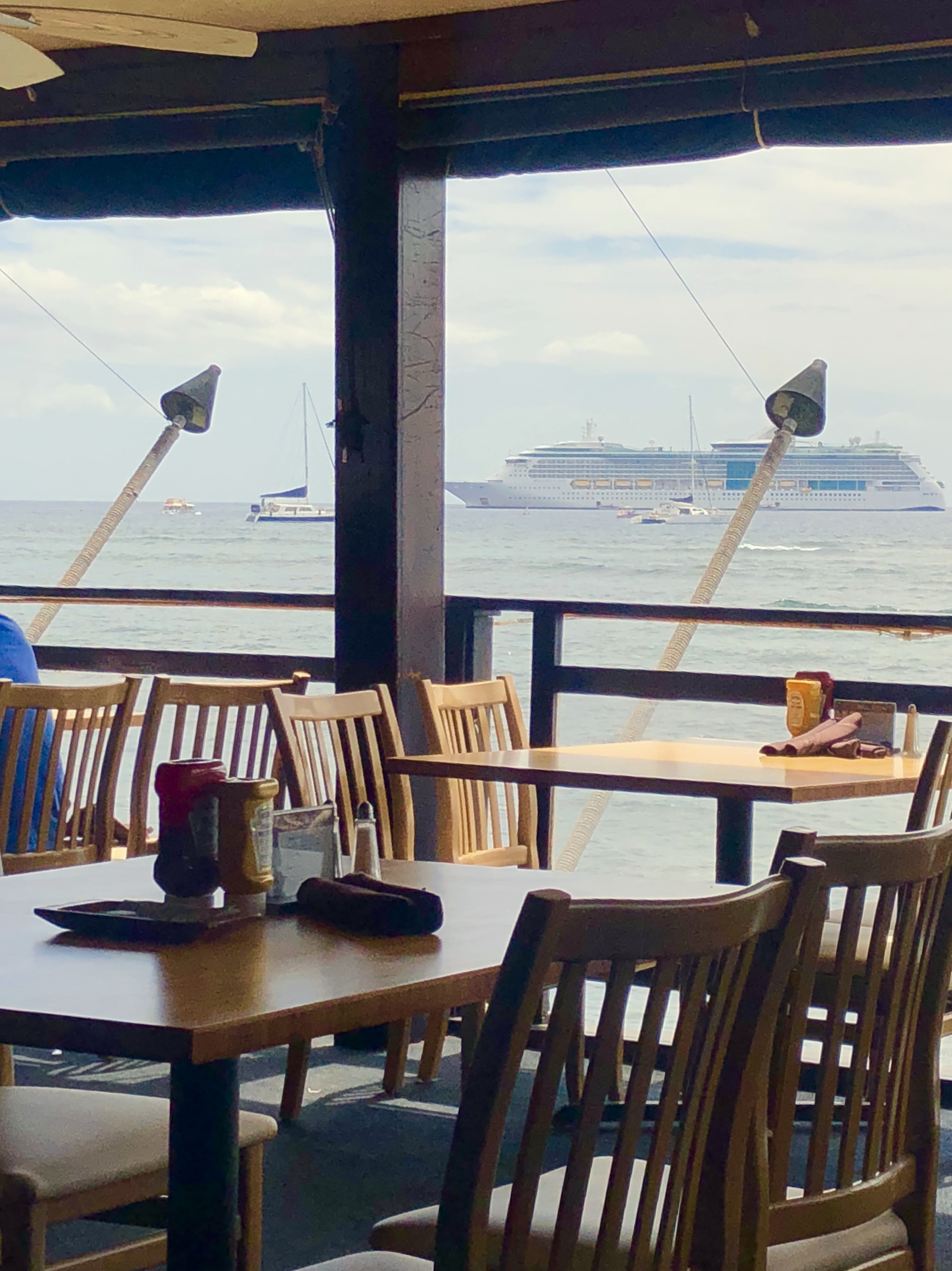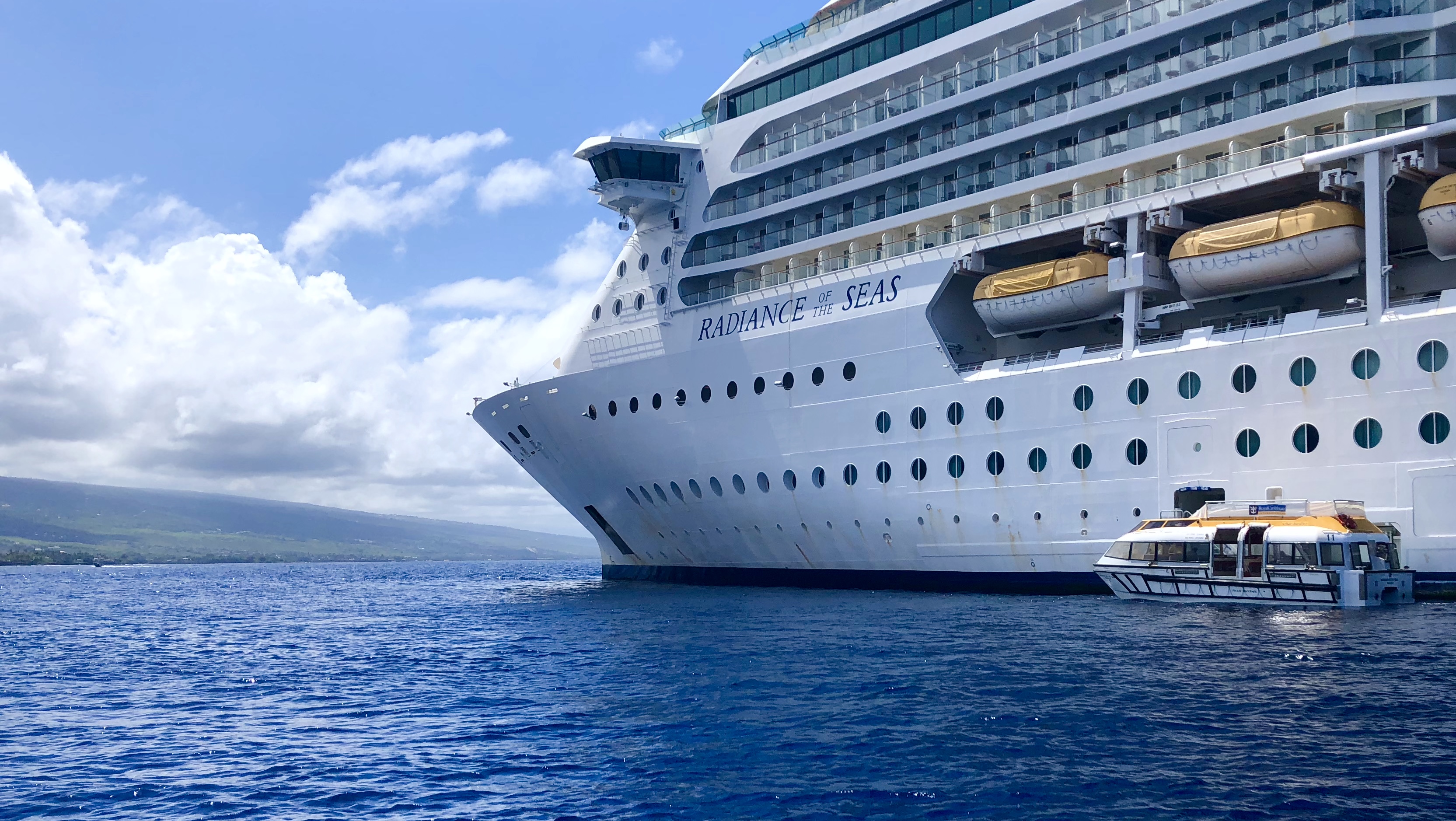 The water was the most amazing blue colour. I was the first tender process since they left Hawaii in May – and it went smoothly. Of course many people complained.