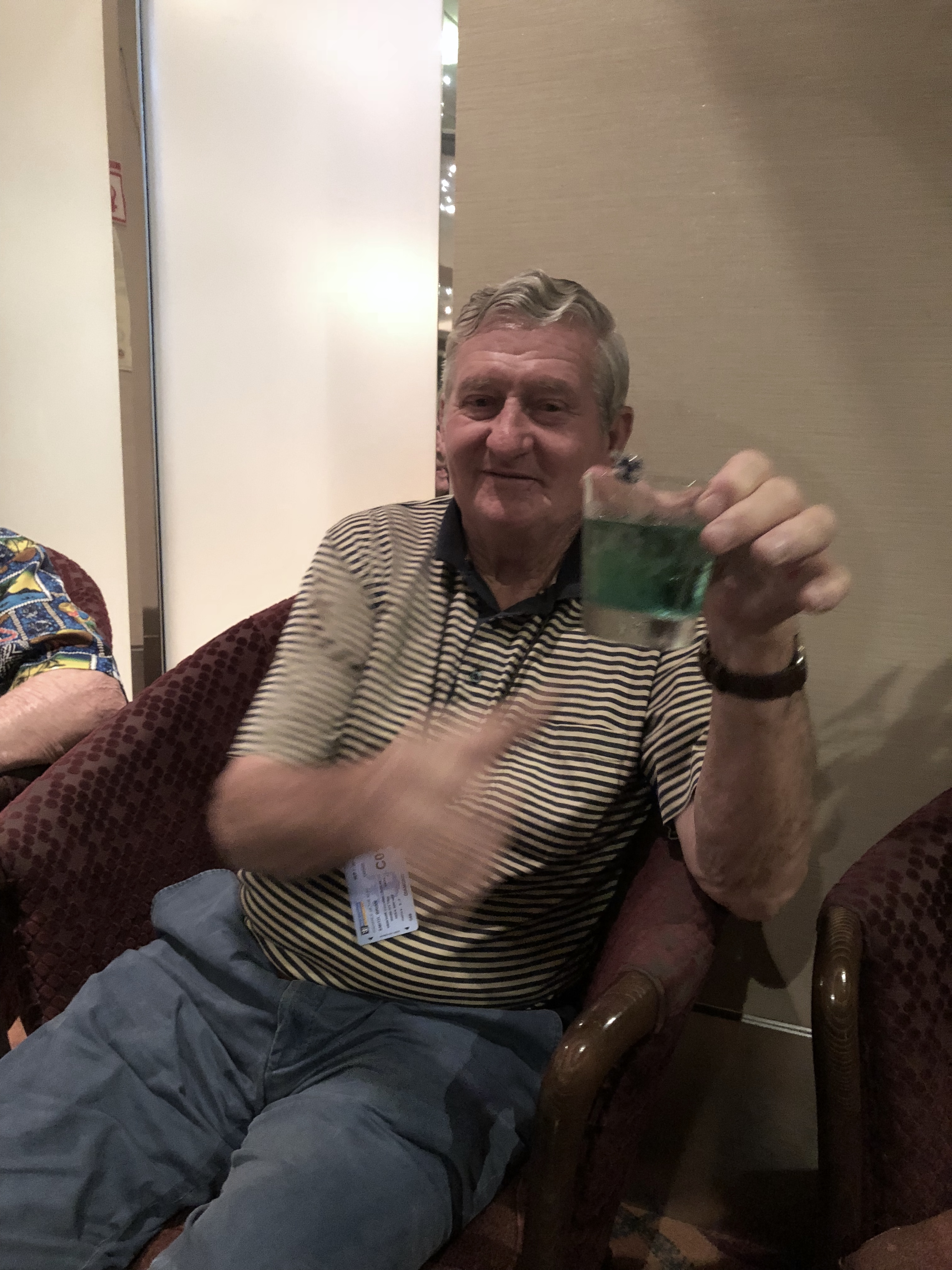 BJ asked Minguel (the amazing barman) for a “whisky….make it a Blue”. Quick as a flash off he went then came back with a BLUE whisky. Food colouring. hahahahha