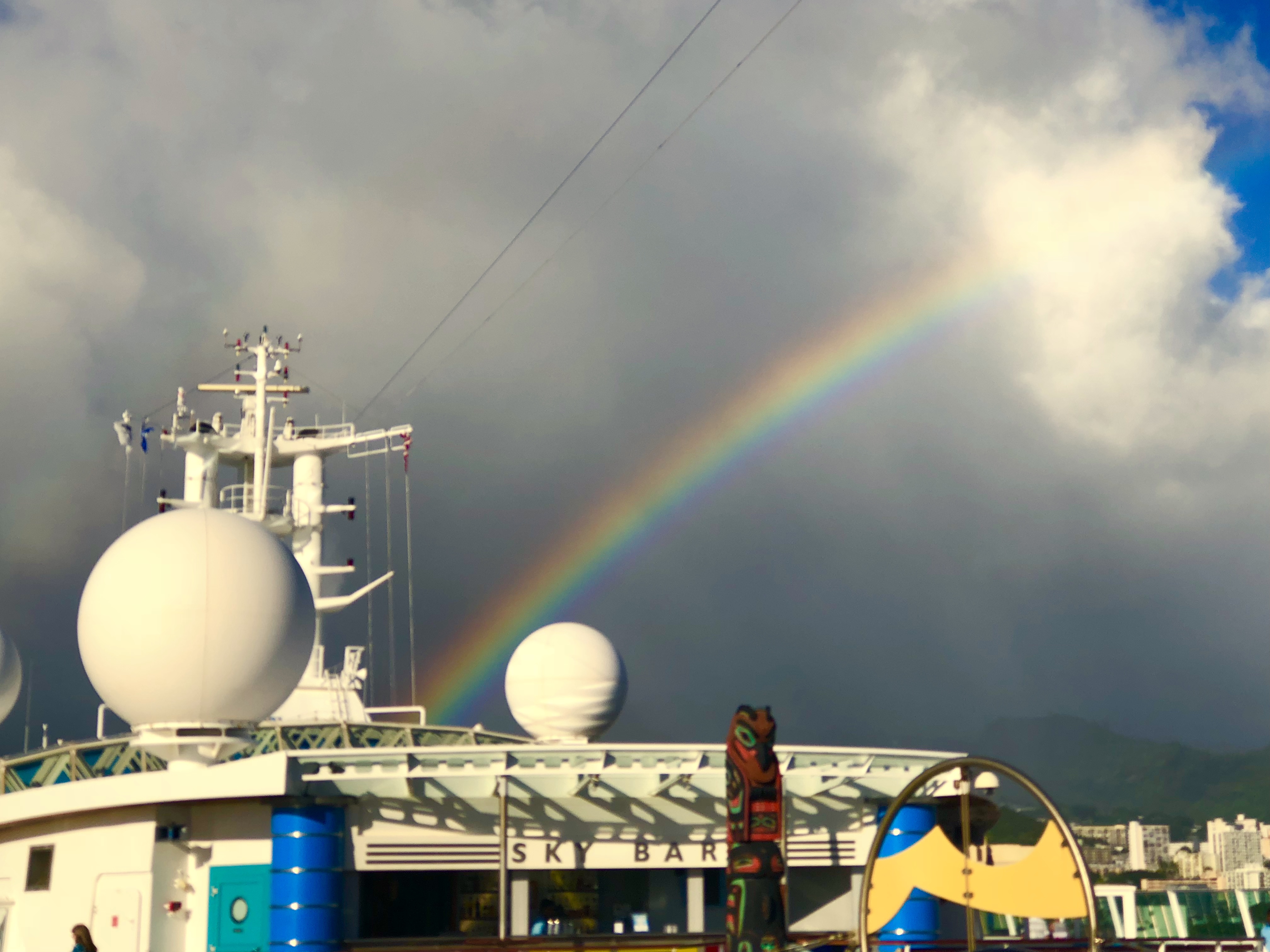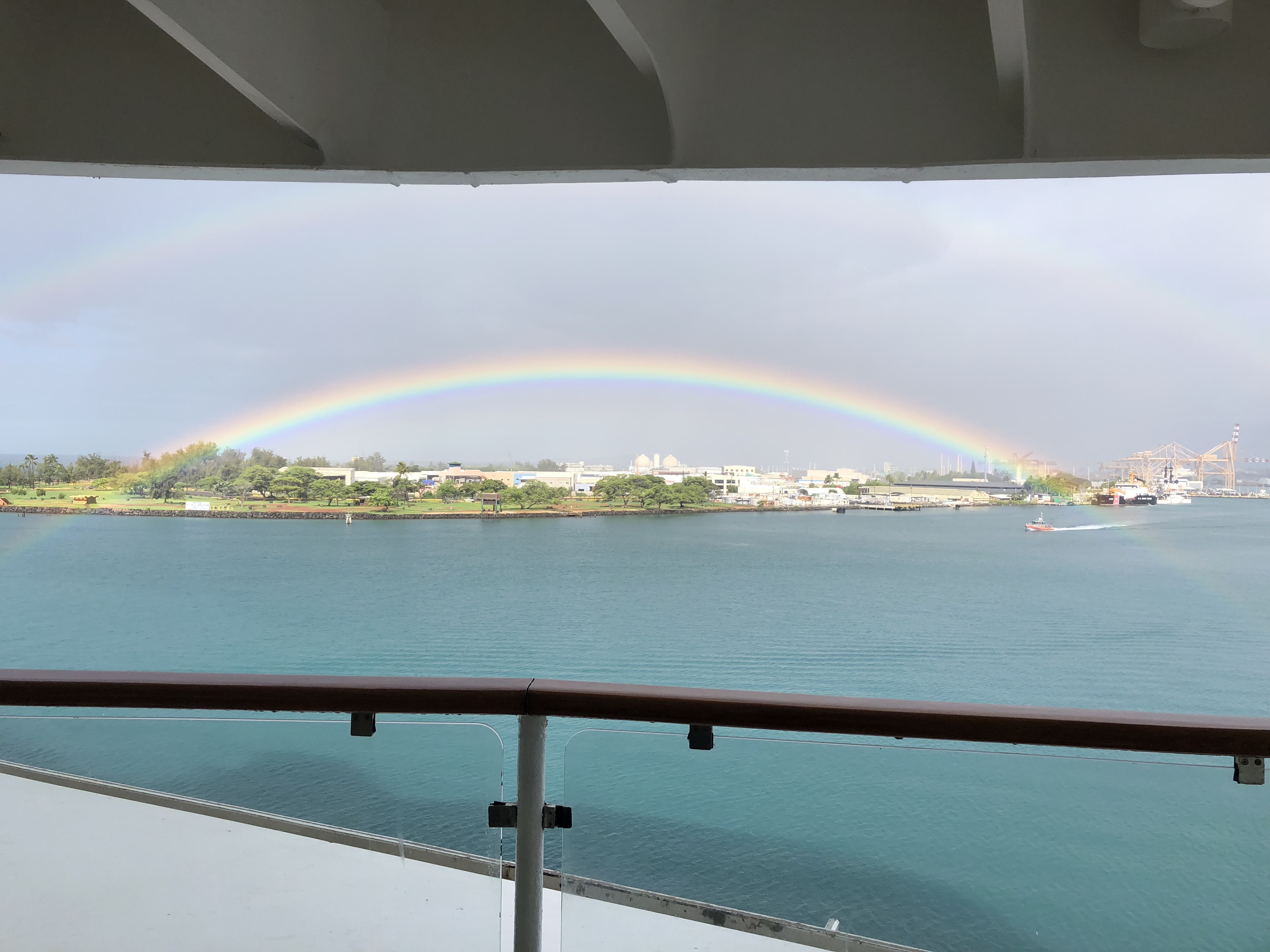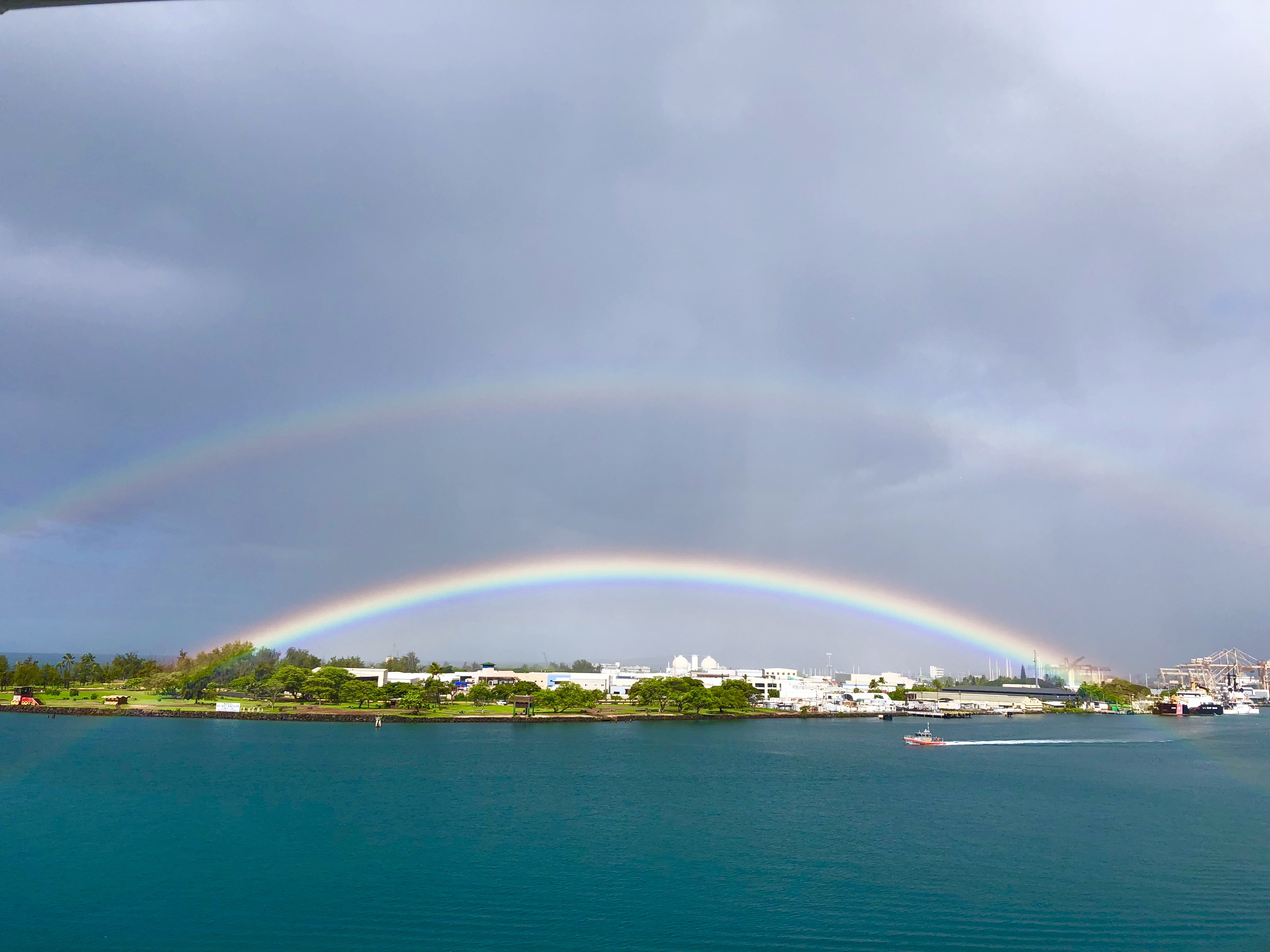 And then the giant rainbow turned into a double and drifted towards the ship.