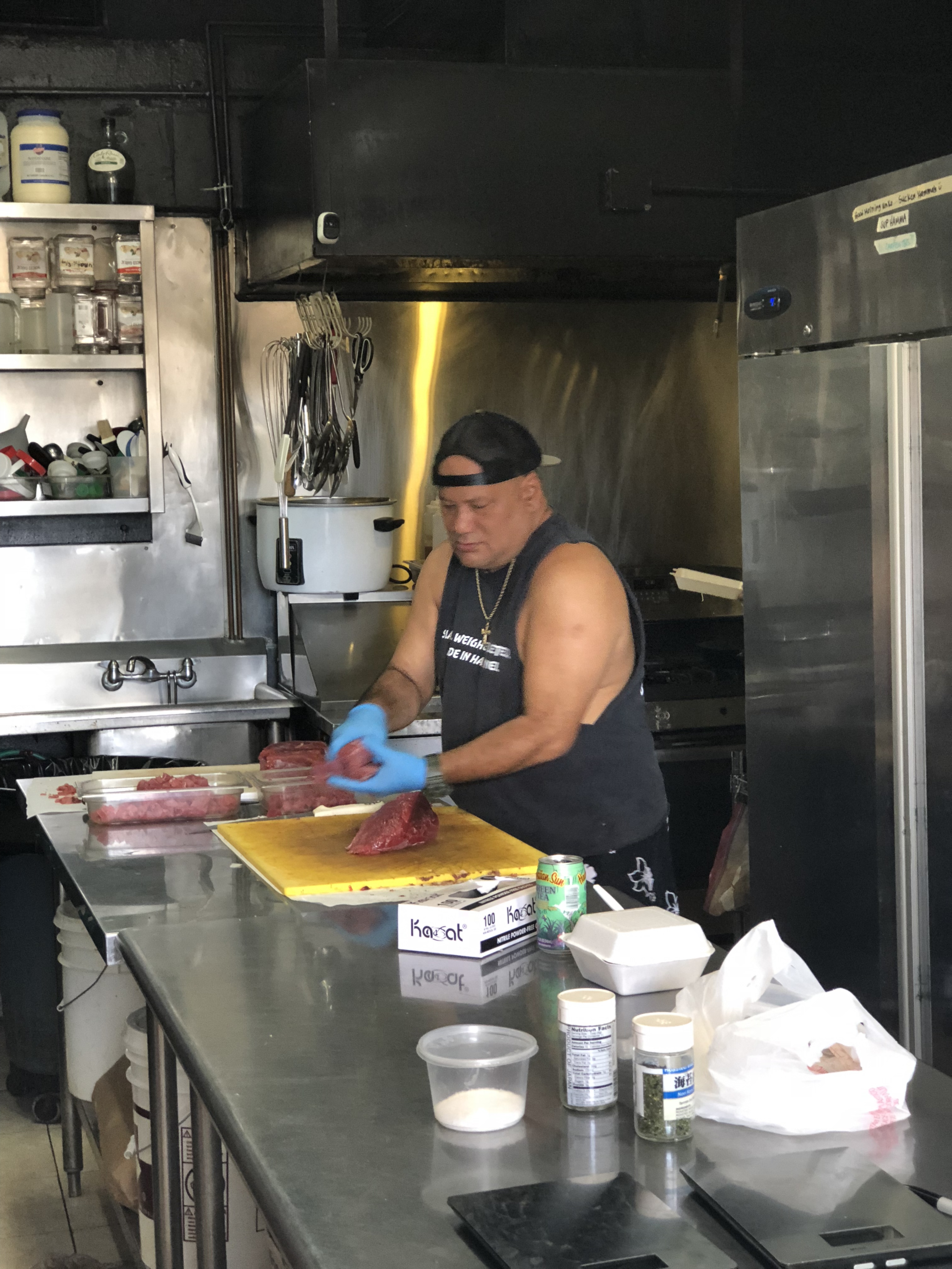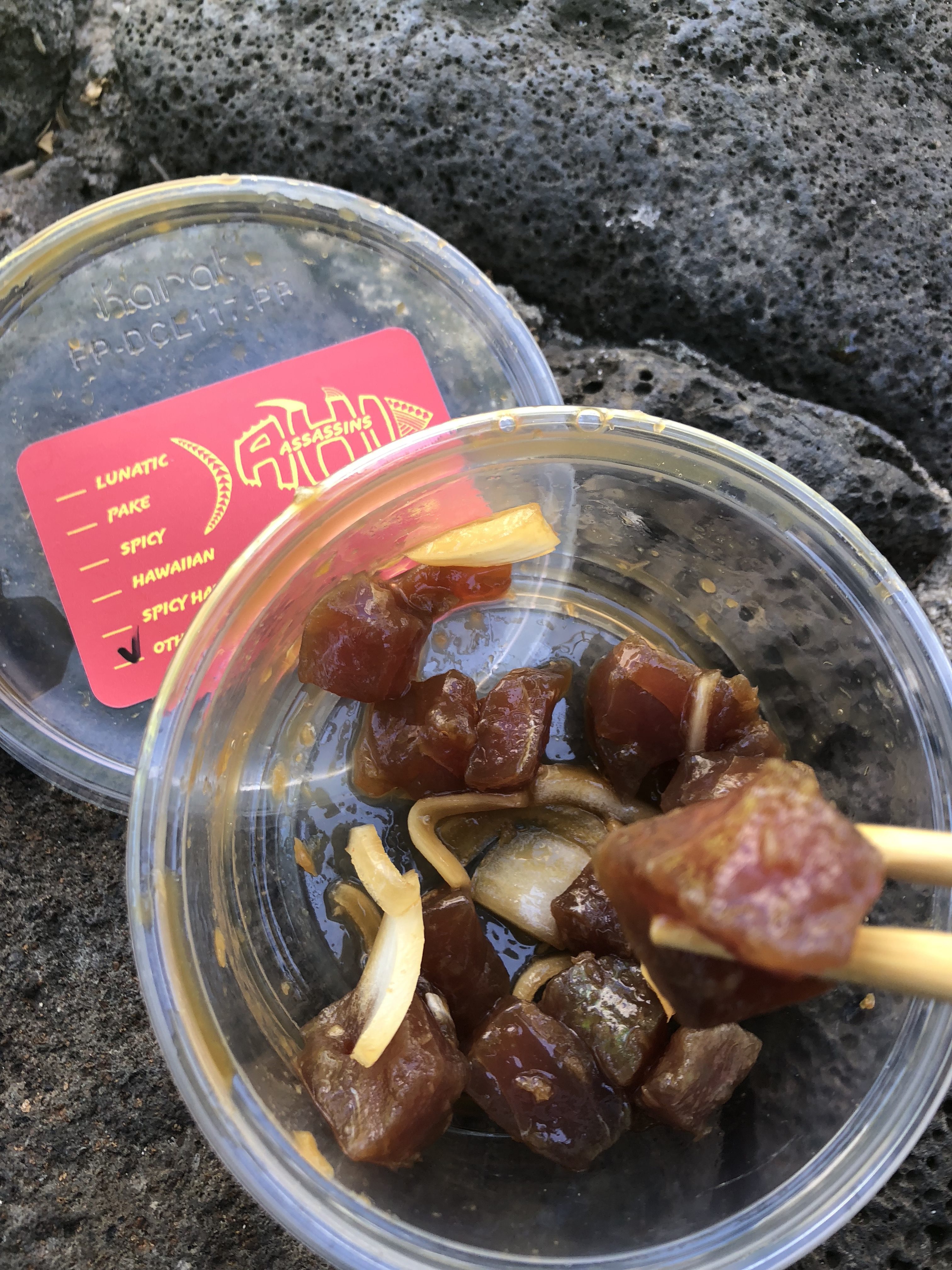 I was chatting to Sarah About how good Hawaiian Poke (poke aye) is. It’s one of the main native foods – diced raw fish…usually tuna. Sarah had seen a show about a tiny lace called Ahi Assassin. So I headed off in search. It was way back in Honolulu – lucky for Uber!