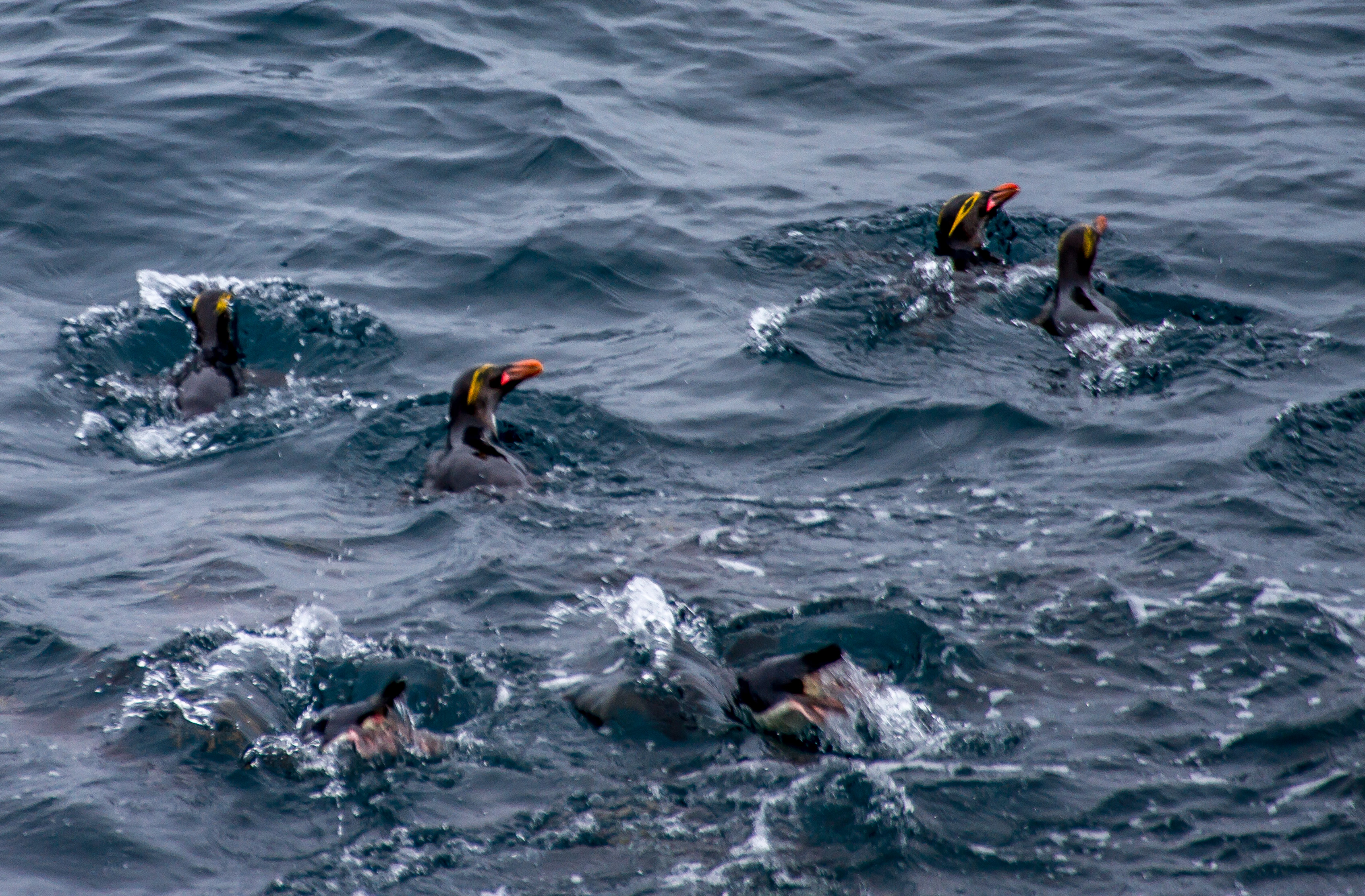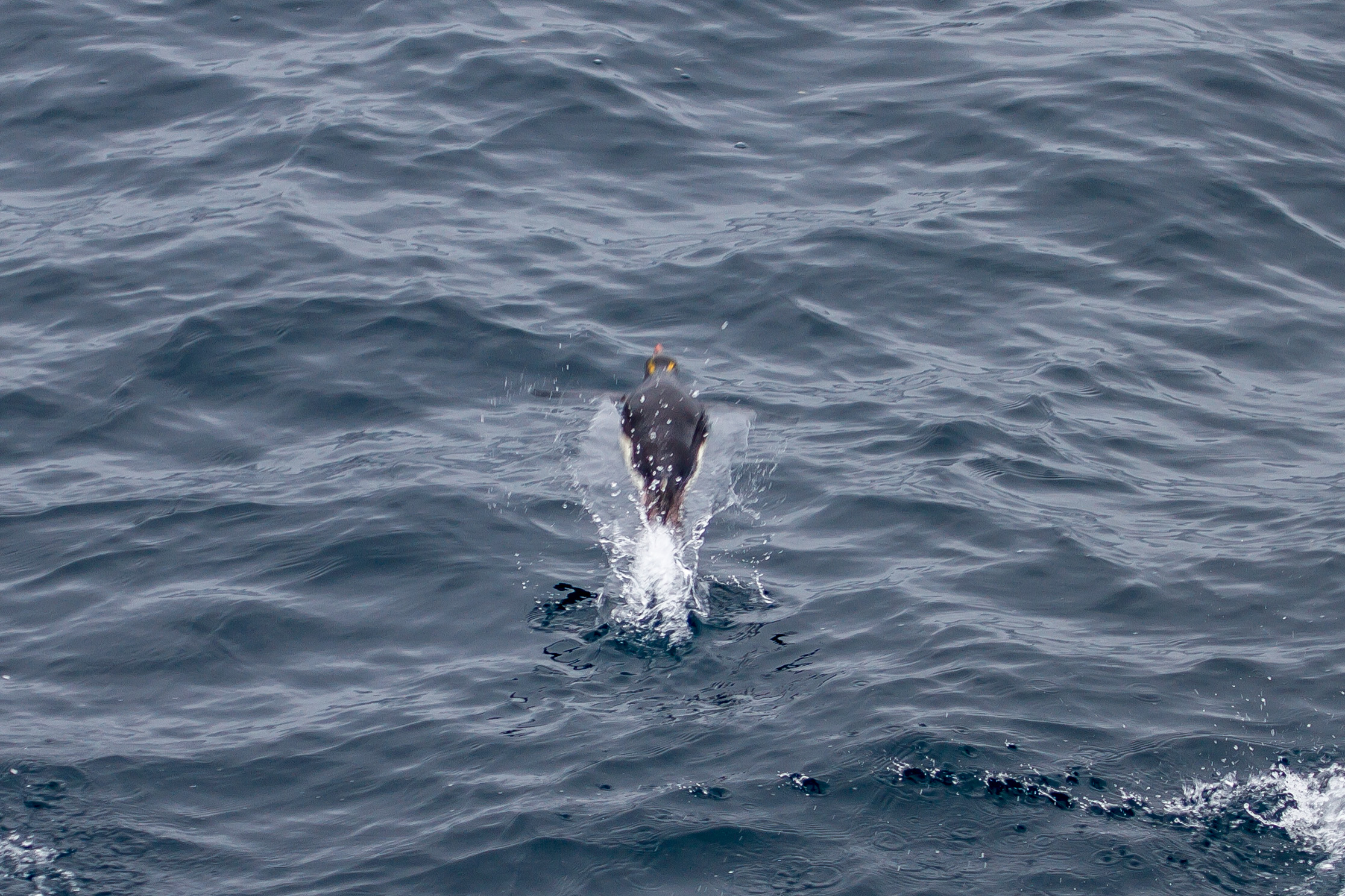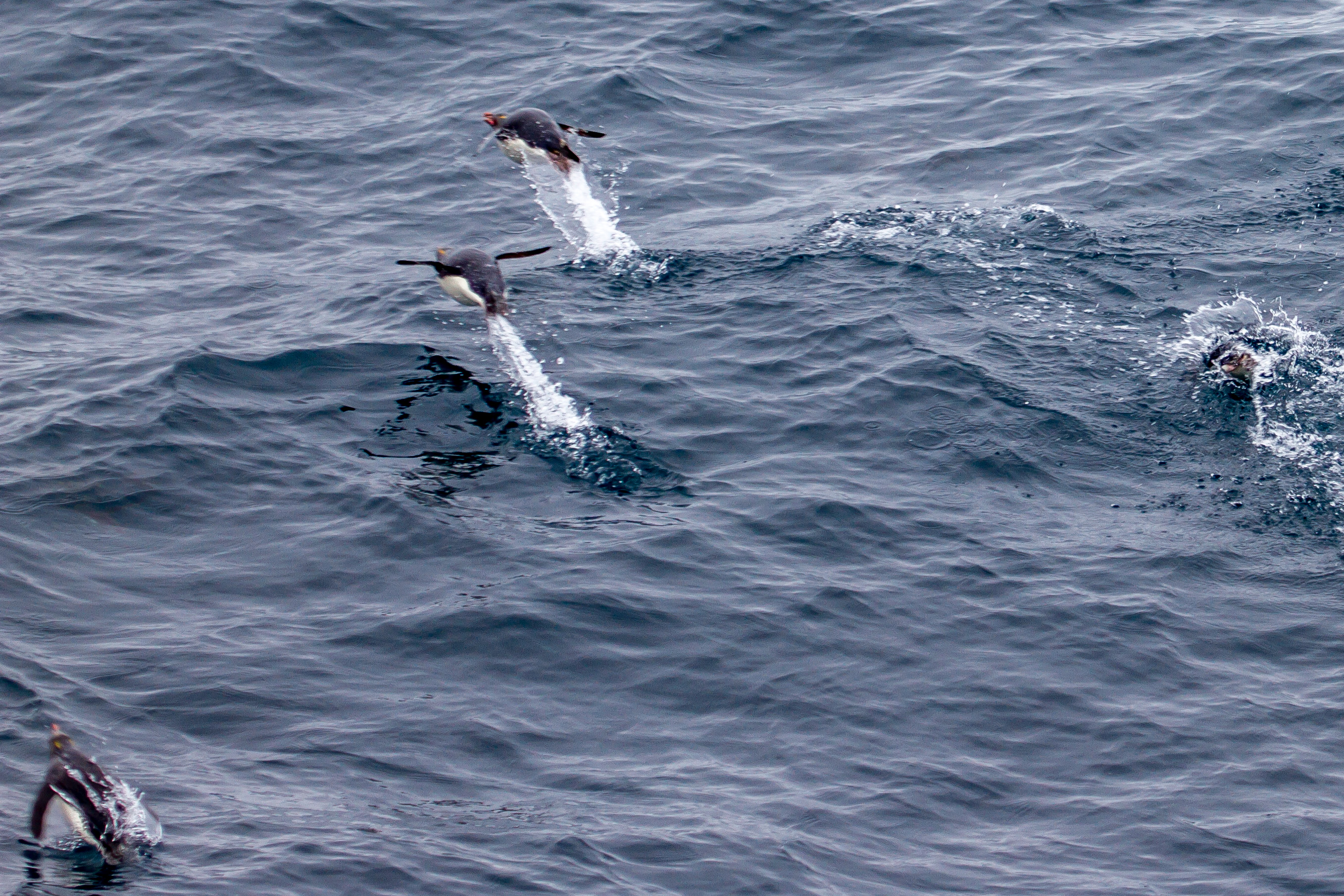 And then mobs of Macaroni Penguins out hunting. Flying through the air.