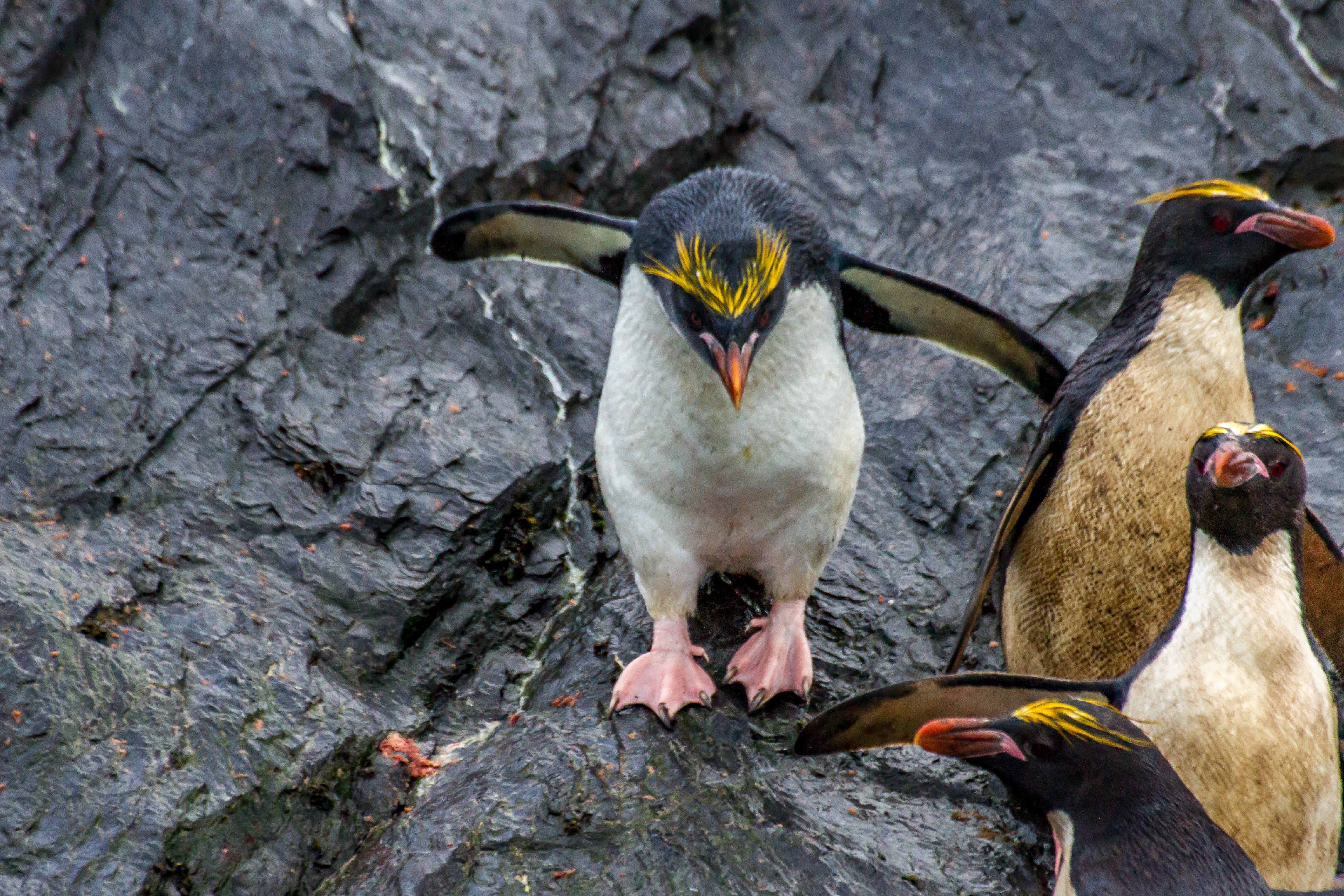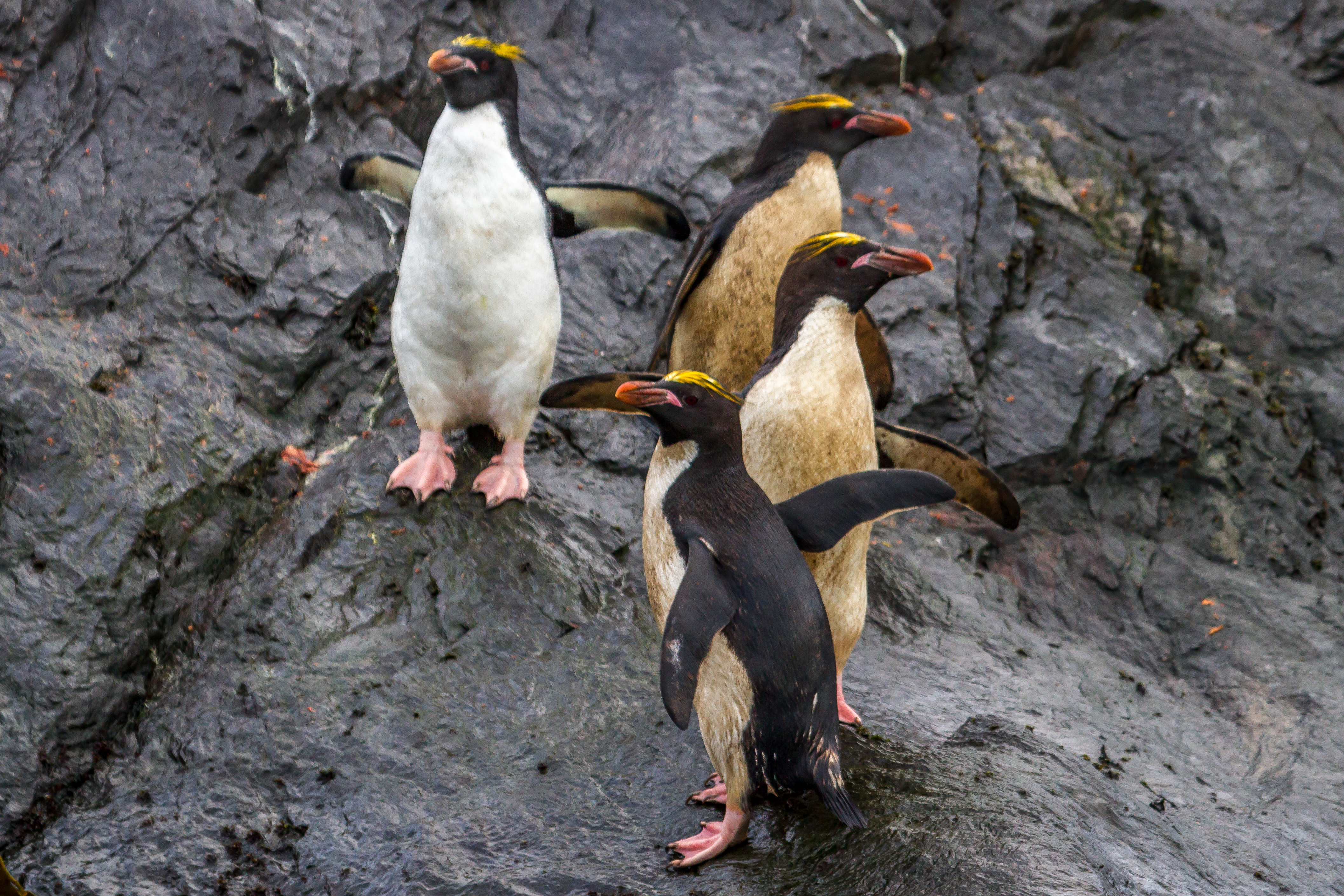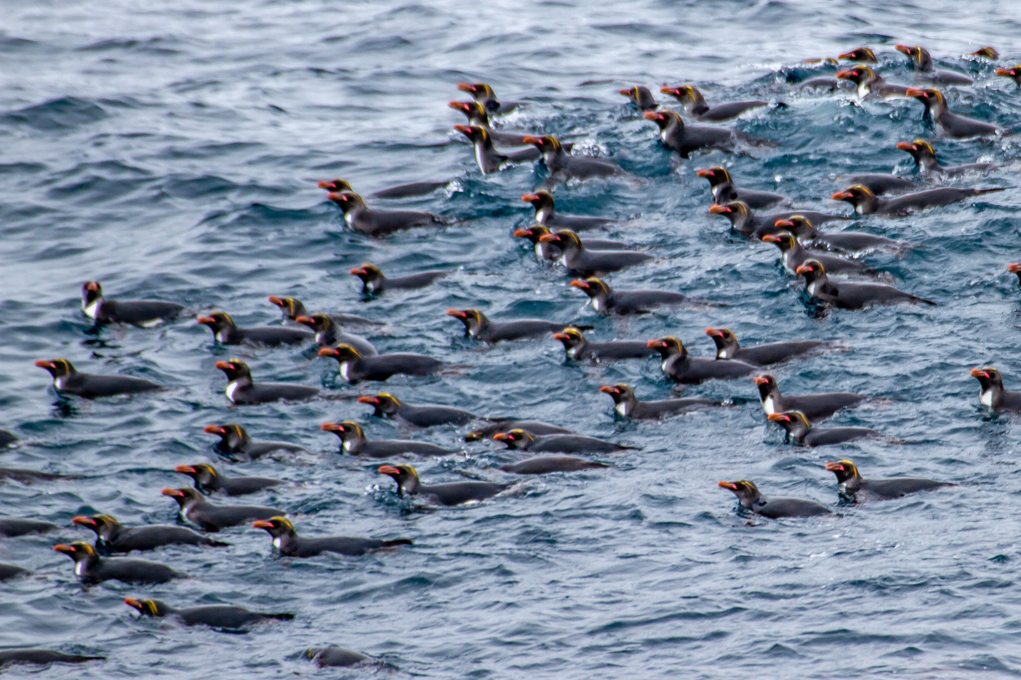 And then mobs of Macaroni Penguins out hunting. Flying through the air.
