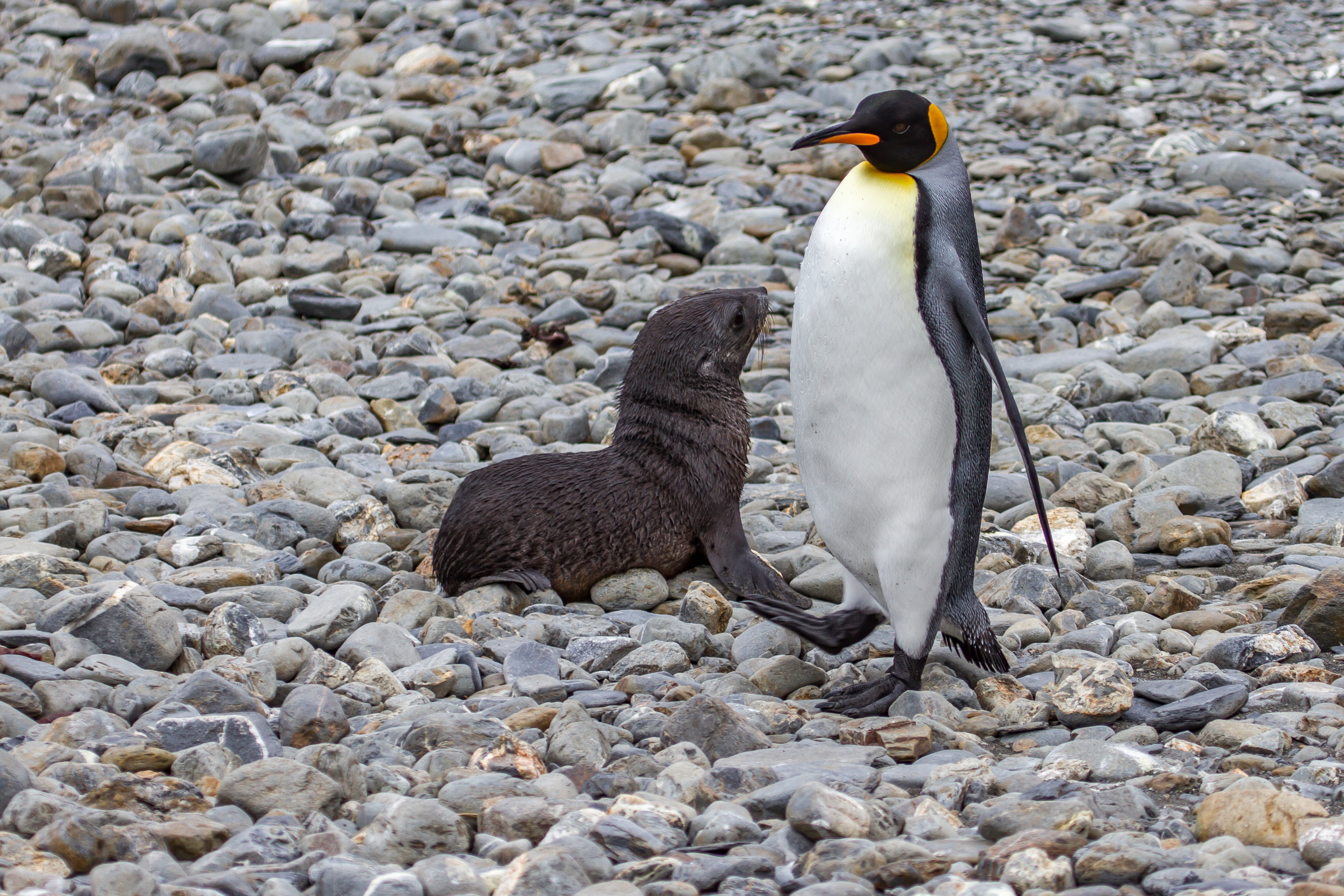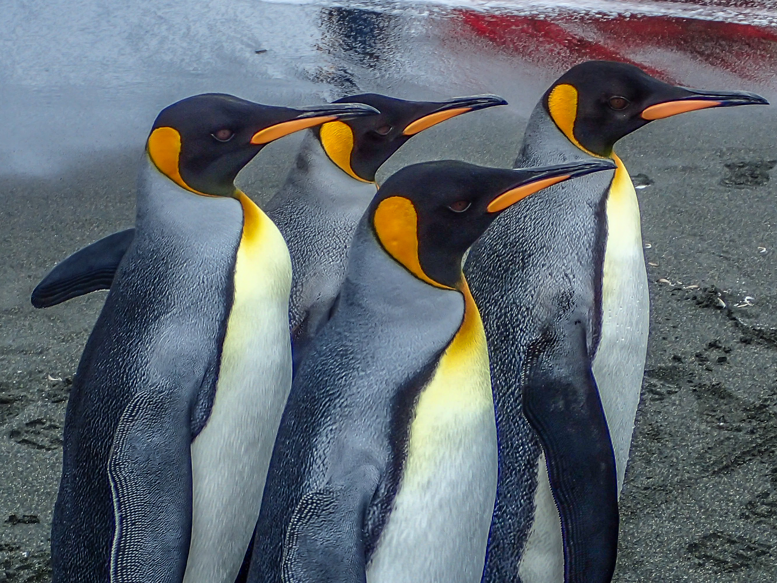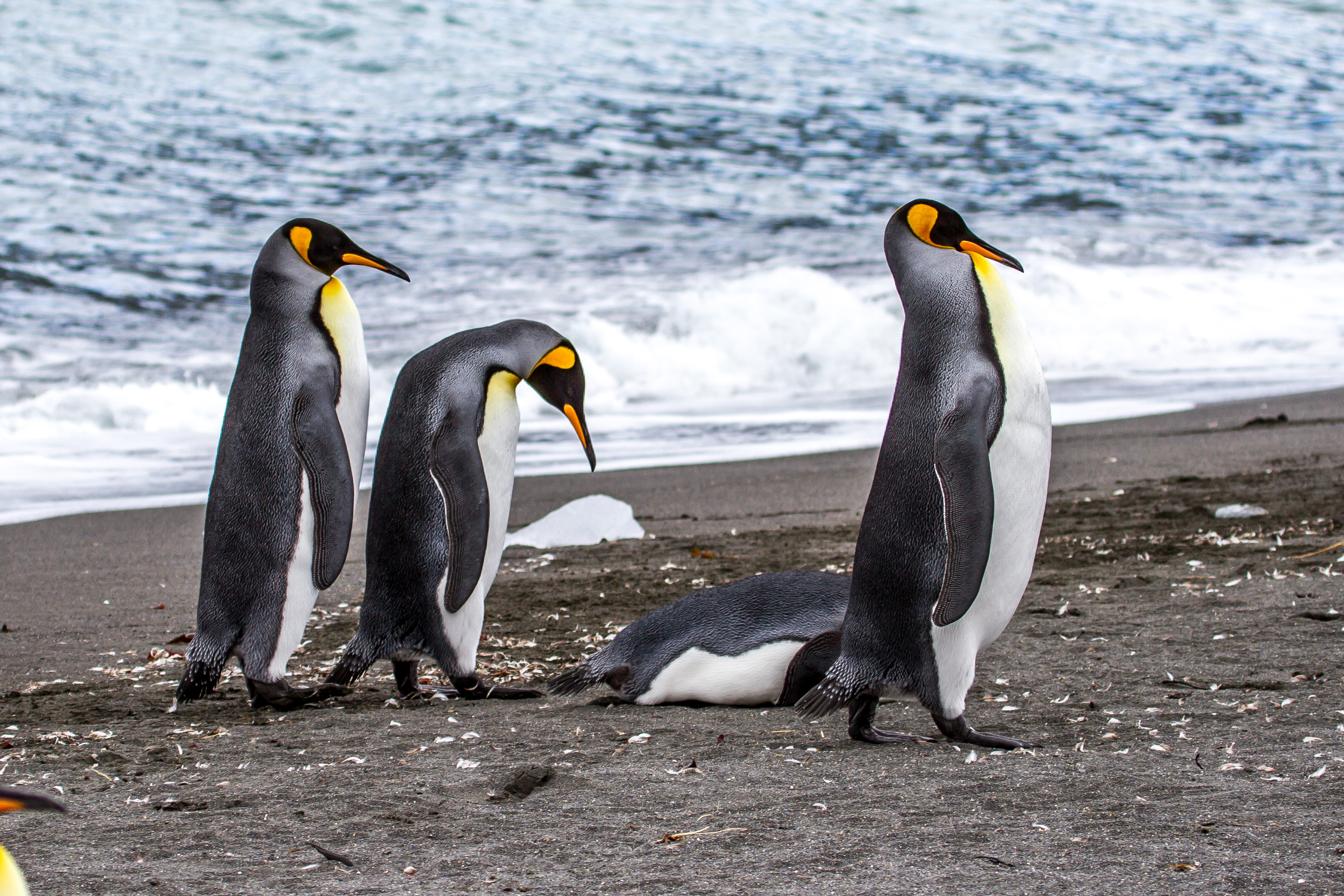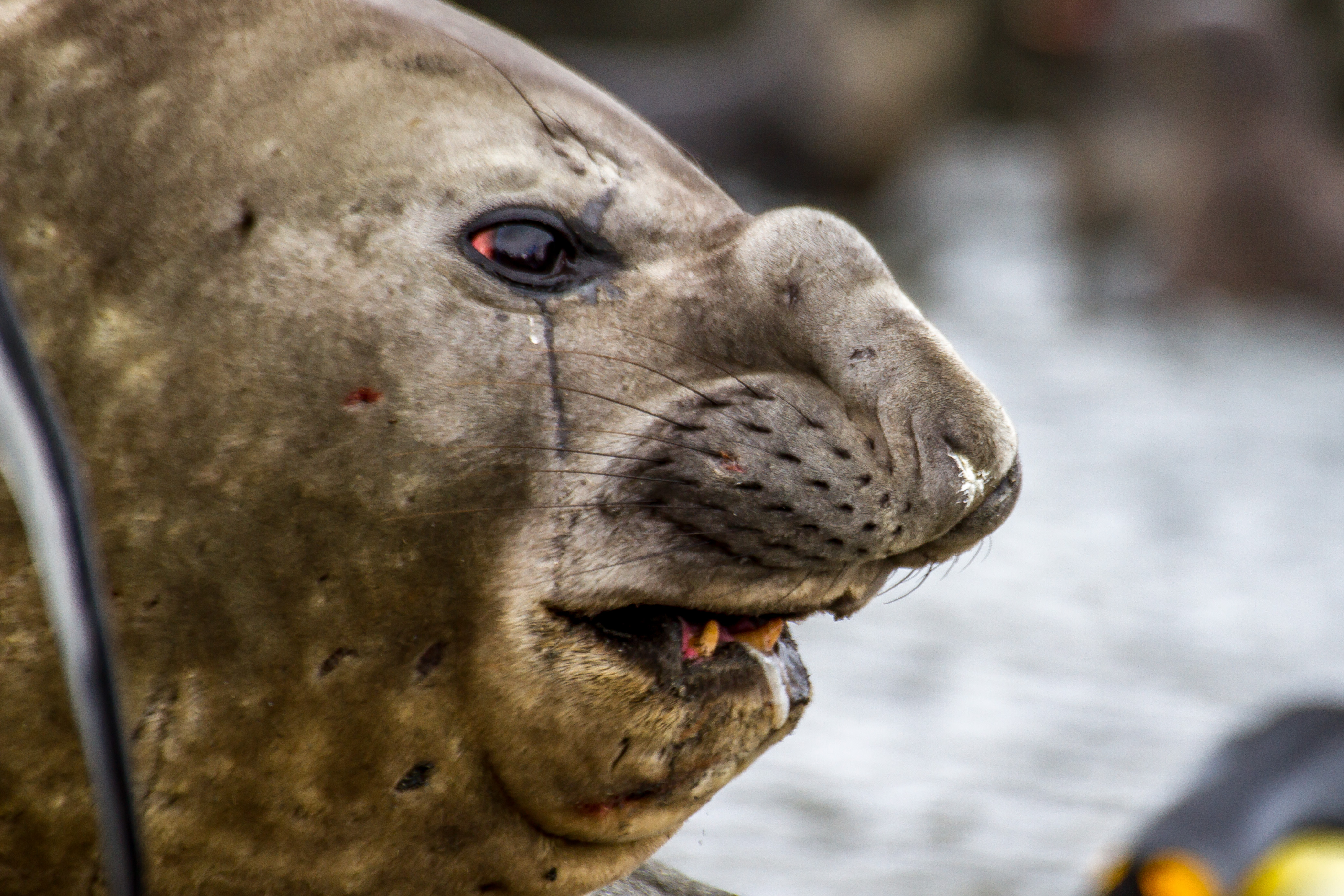 We walked 5 paces up the beach and had our briefing. “Stay it the flags, 2 meters from Penguins unless they come to you, 5 from the seals, 15 metres from Elephants” – “yeah, like I’m going closer then that!”. Then walked another 5 steps and stopped. We had seen it from the zodiac but it was not the same as standing on the beach with ……… King penguins. Their gold patches glowing in the sun. And they were everywhere. I mean everywhere. The beach was at least a 2km long and covered. Everyone took about 100 photos before moving 10 steps. Delegations of Kings came down to check us out. Very business like.