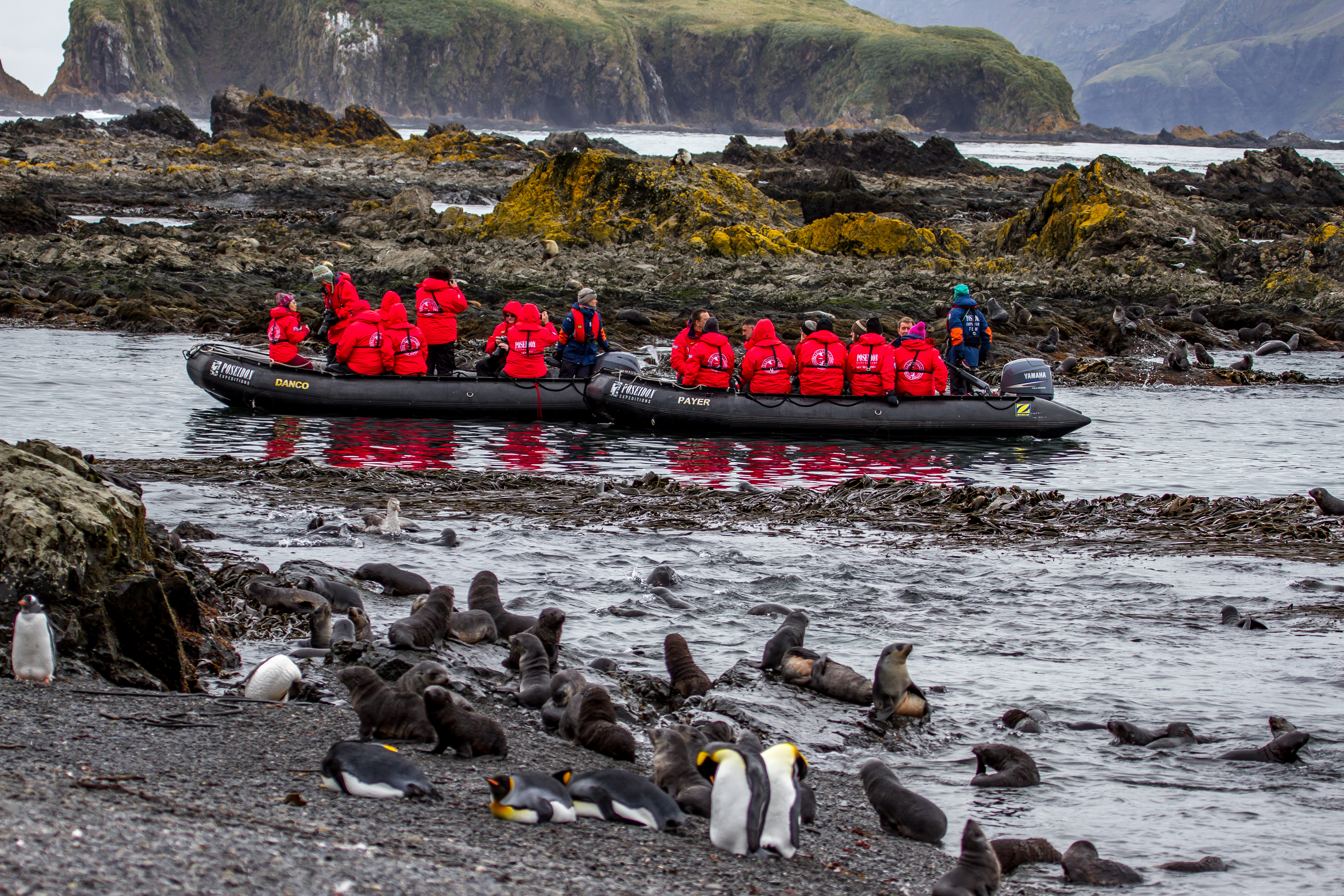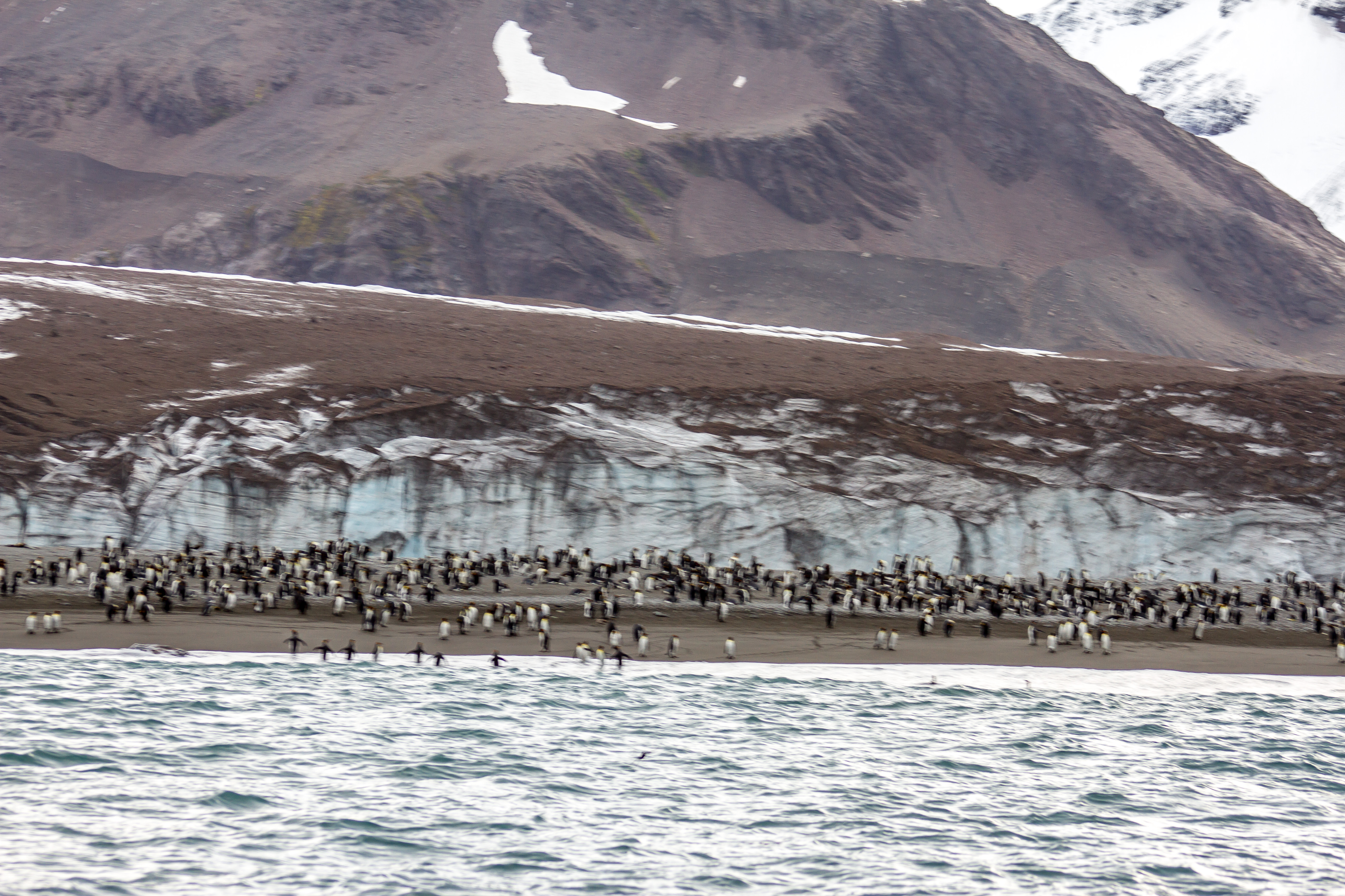 After another three hours of walking and staring we hopped back into a Zodiac. The poor team were still in and out of the deep rough water getting us in. We went for a cruise before going back to the ship. Just in case we hadn’t quite got the concept of how many King Penguins there were. So many.