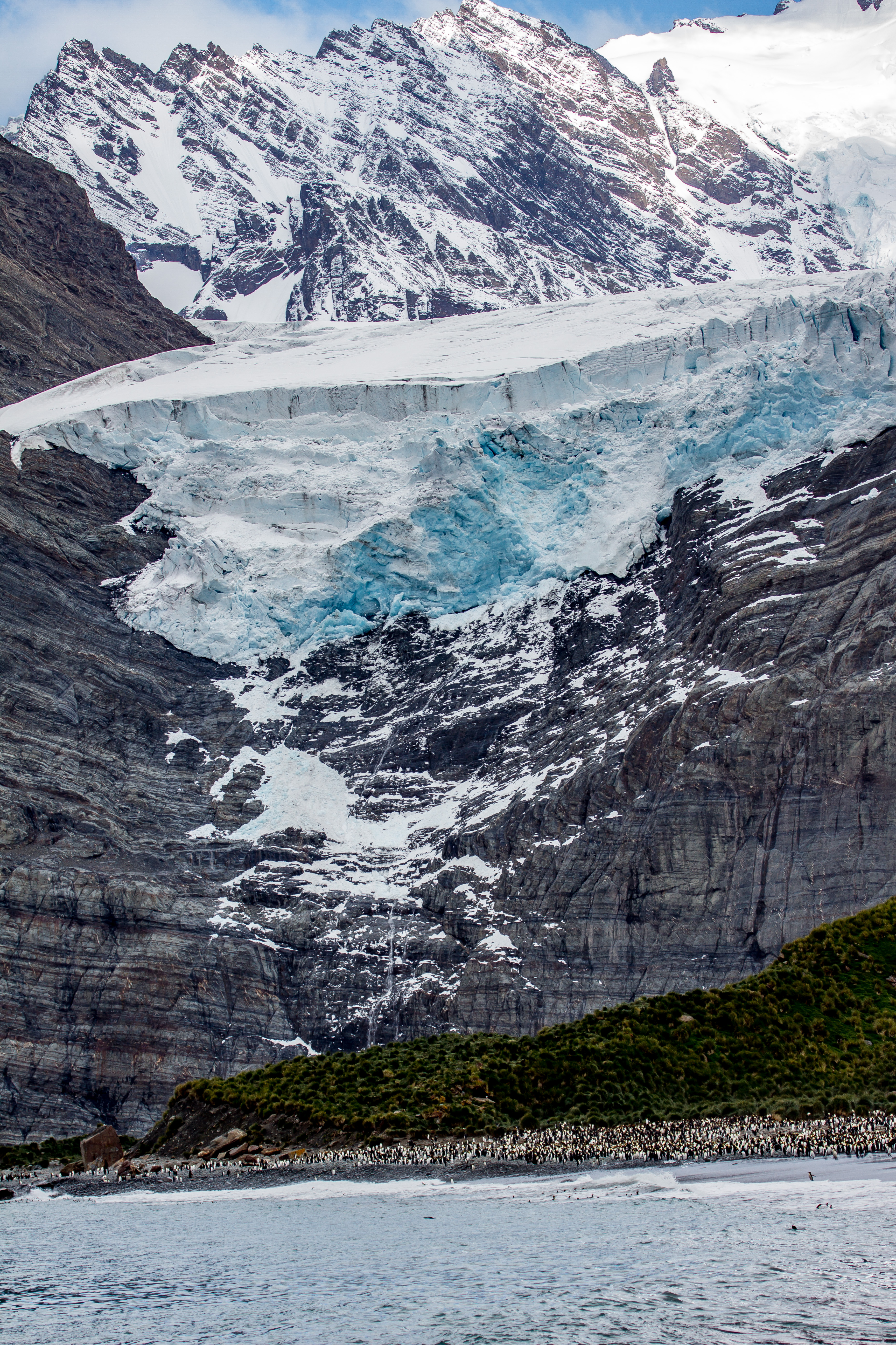 South Georgia is a peak sticking up from the Scotia Arc – an underwater mountain range – the continuation of the Andes. 74% of South Georgia is covered with glaciers, ice caps and snow fields in summer.