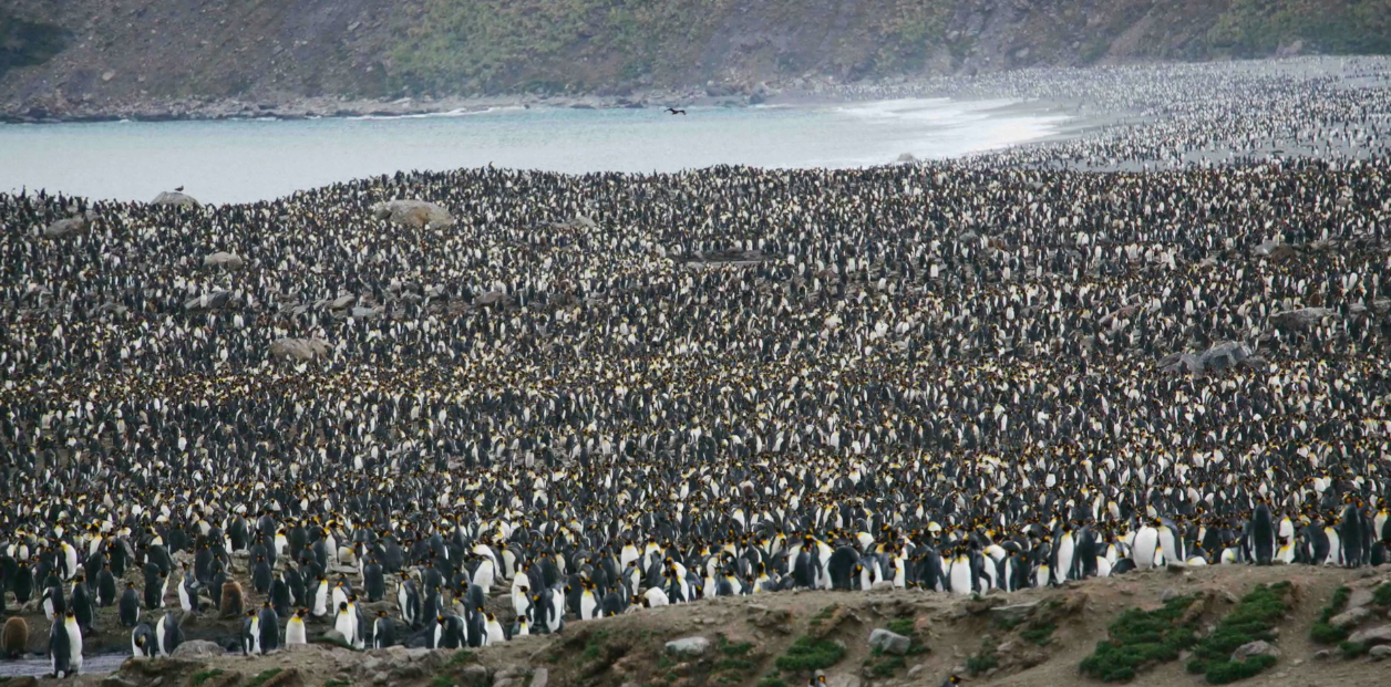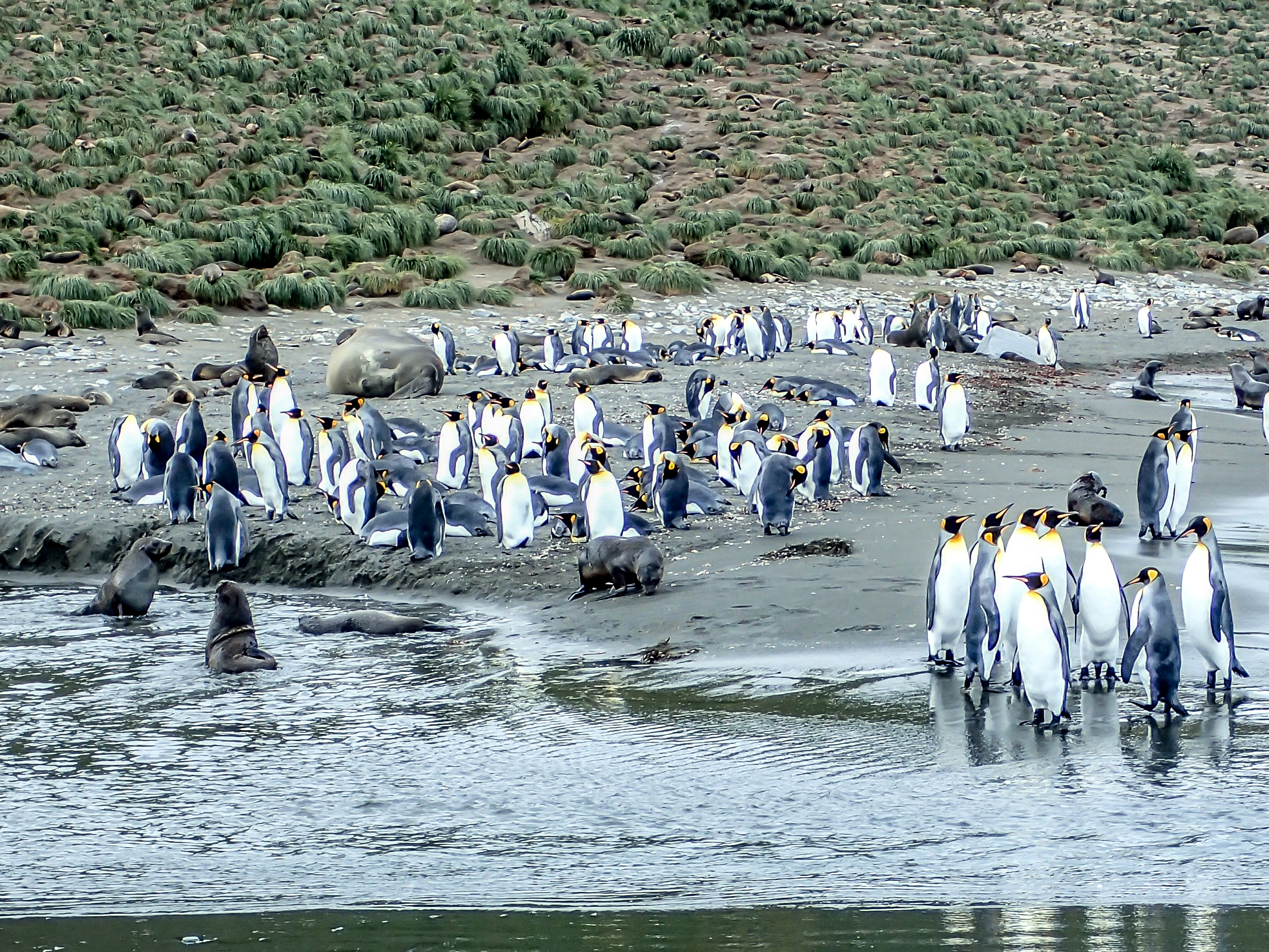 Ready for it……120,000 breeding pairs…plus a chick (or two) each! So up to 350,000 King Penguins on the beach, the slopes and up the hills. And thousands of young Fur Seals. And 100’s of Elephant Seals. This is the beach that David Attenborough is often seen on!