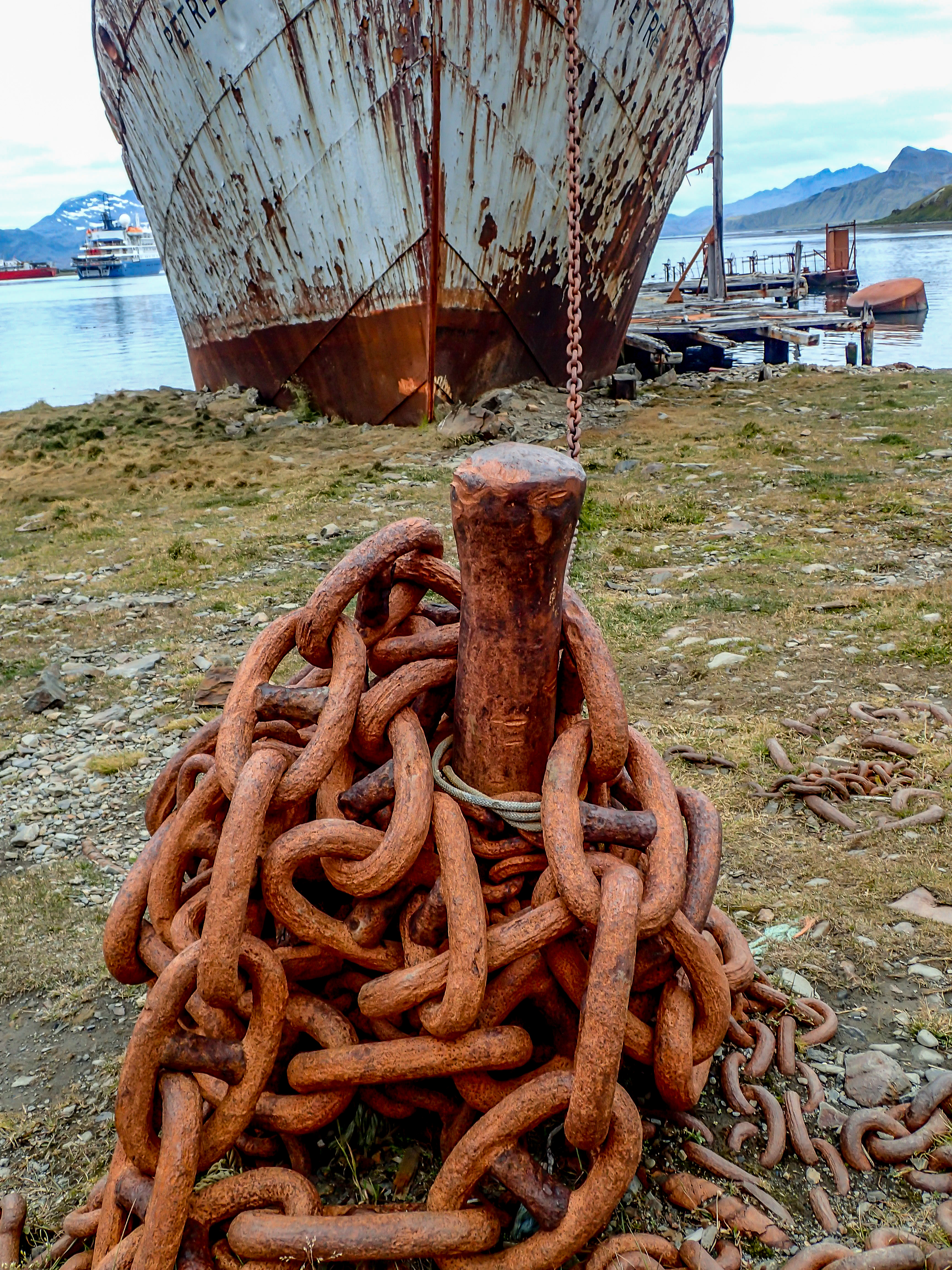 There was a yacht tied up at the only jetty in town so I went to have a chat. It was a NZ couple that have been sailing the world for years. I was invited on board and went for a visit. Linda, was so excited to have women to chat to. They are on their way to Cape Town – once they fix the hole where they hit rocks. She was very glad that the yacht didn’t sink. They thought it was going to. They patched it with nailed on tin and calking and limped into port. So now there were having some time in Grytviken.