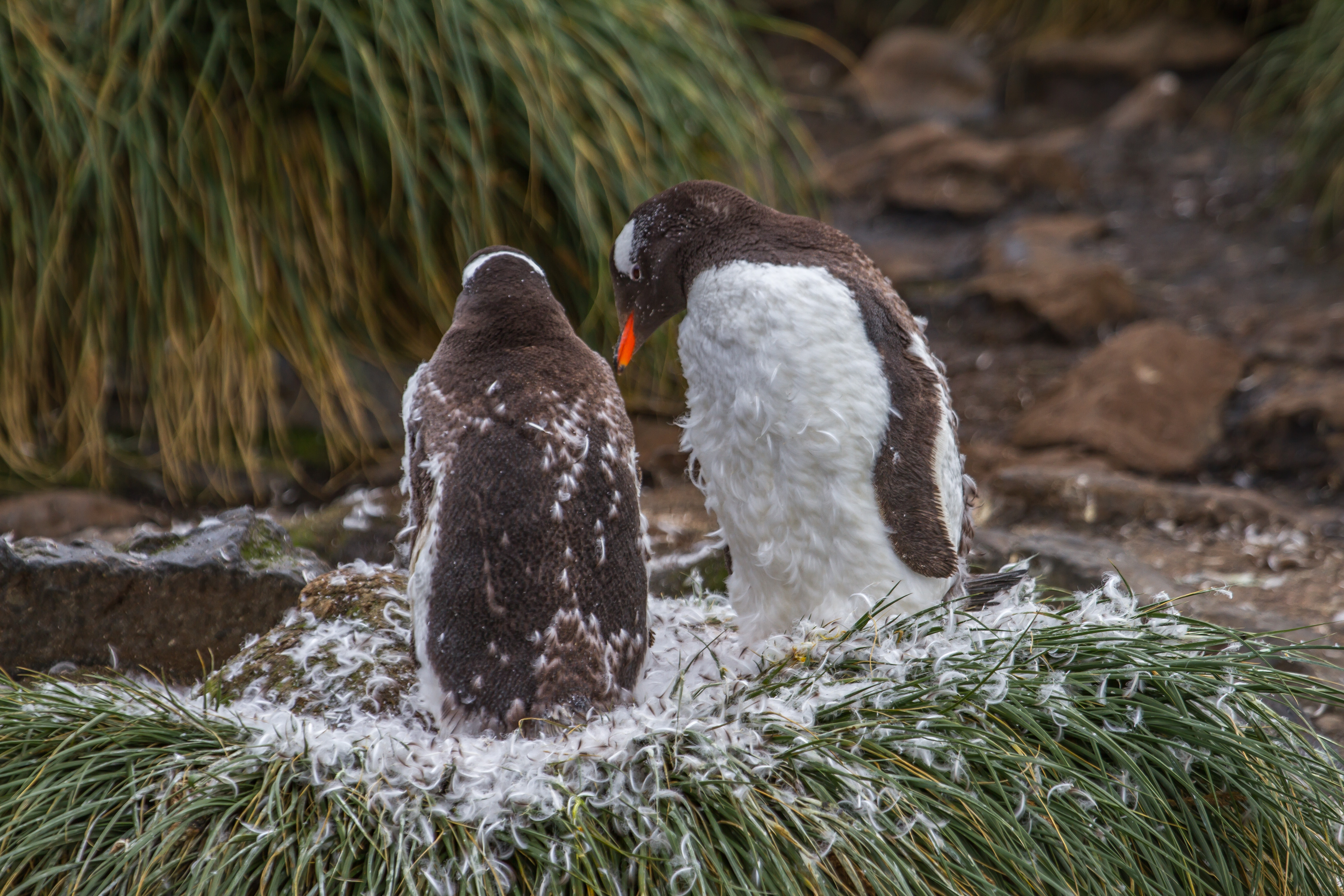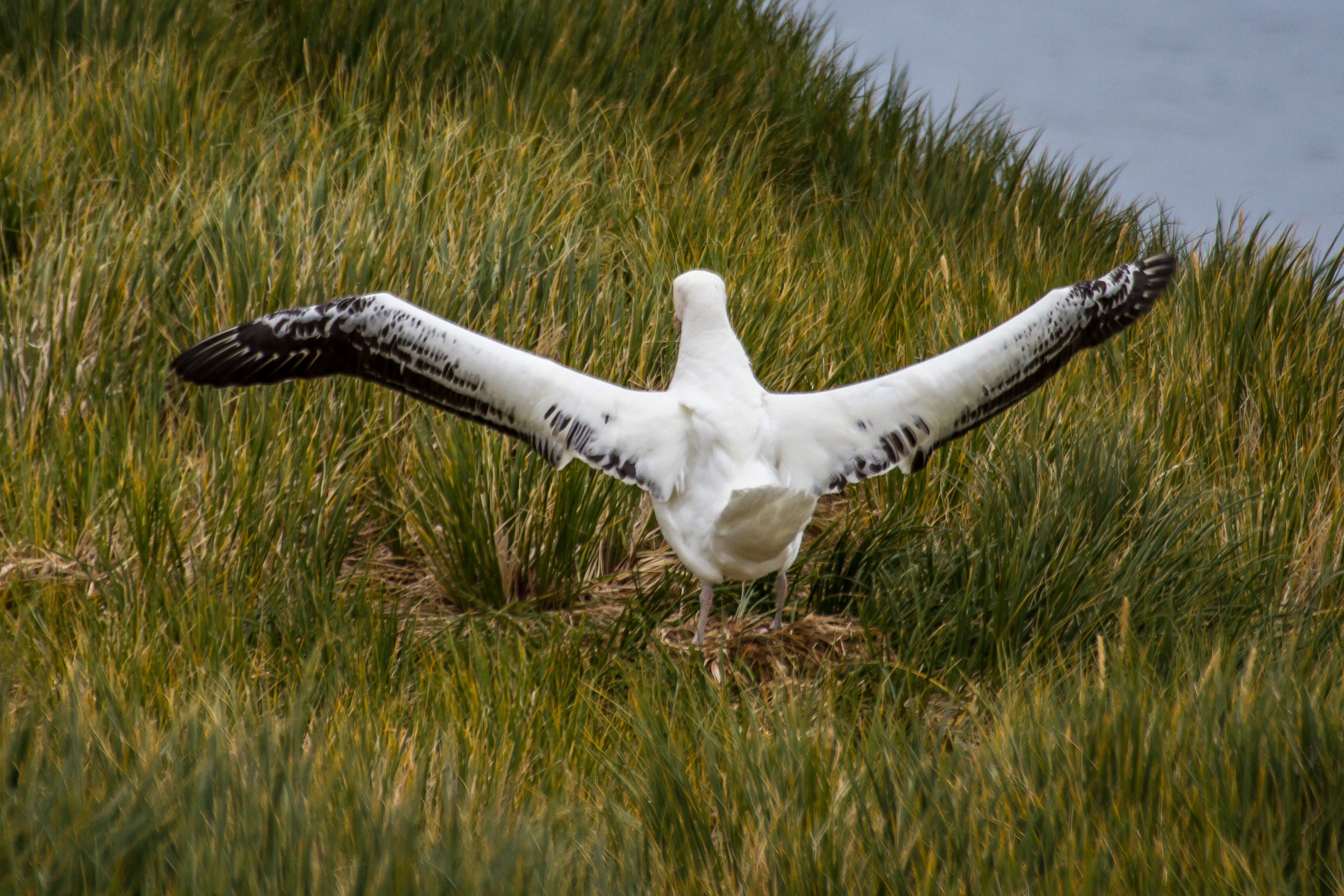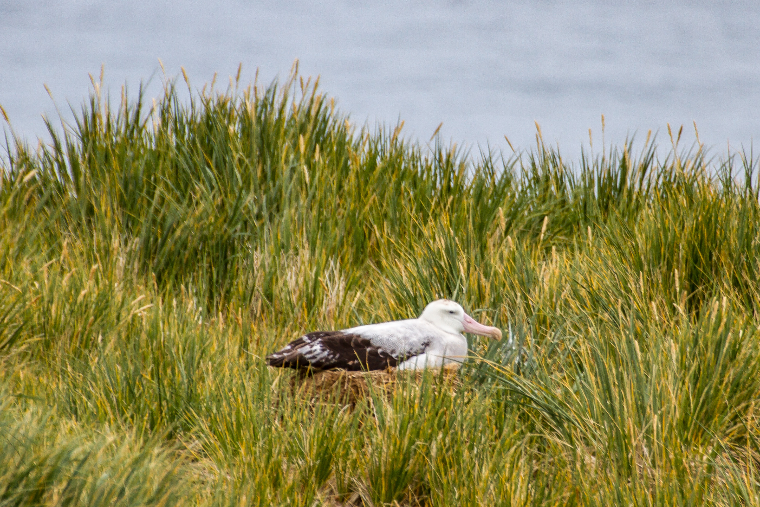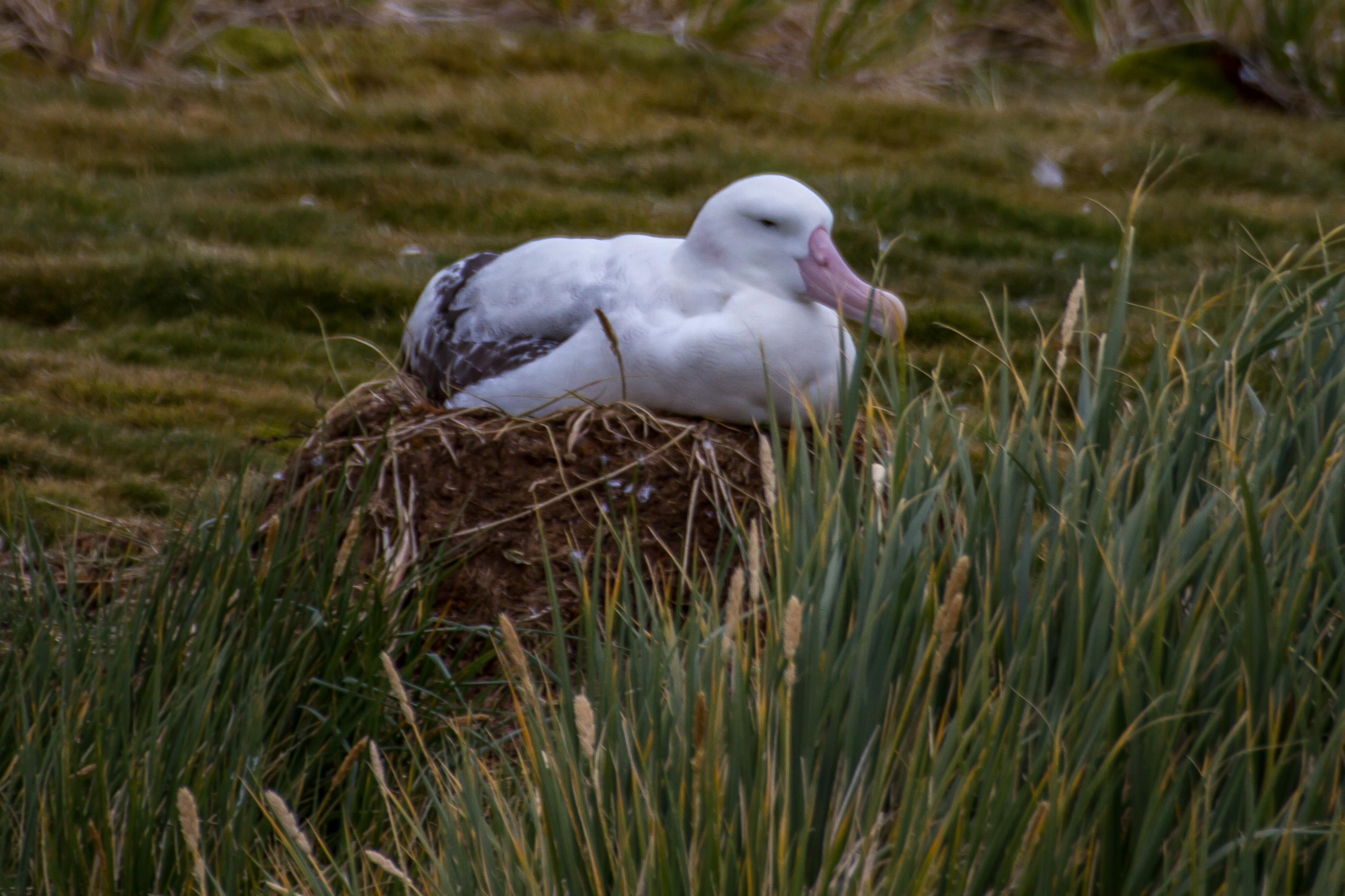 These giant birds, build a ‘basket’ nest, lay their eggs in it in January and then sit on them until November. They sit on a hill side in the Sub Antarctic weather. They get covered in snow and as their nests are on the hill slopes, the wind blasts up onto them. Such a Catch 22 – only huge strong birds would be able to withstand that weather, but huge strong chicks take a lot longer to grow, so the parents have to withstand the conditions.