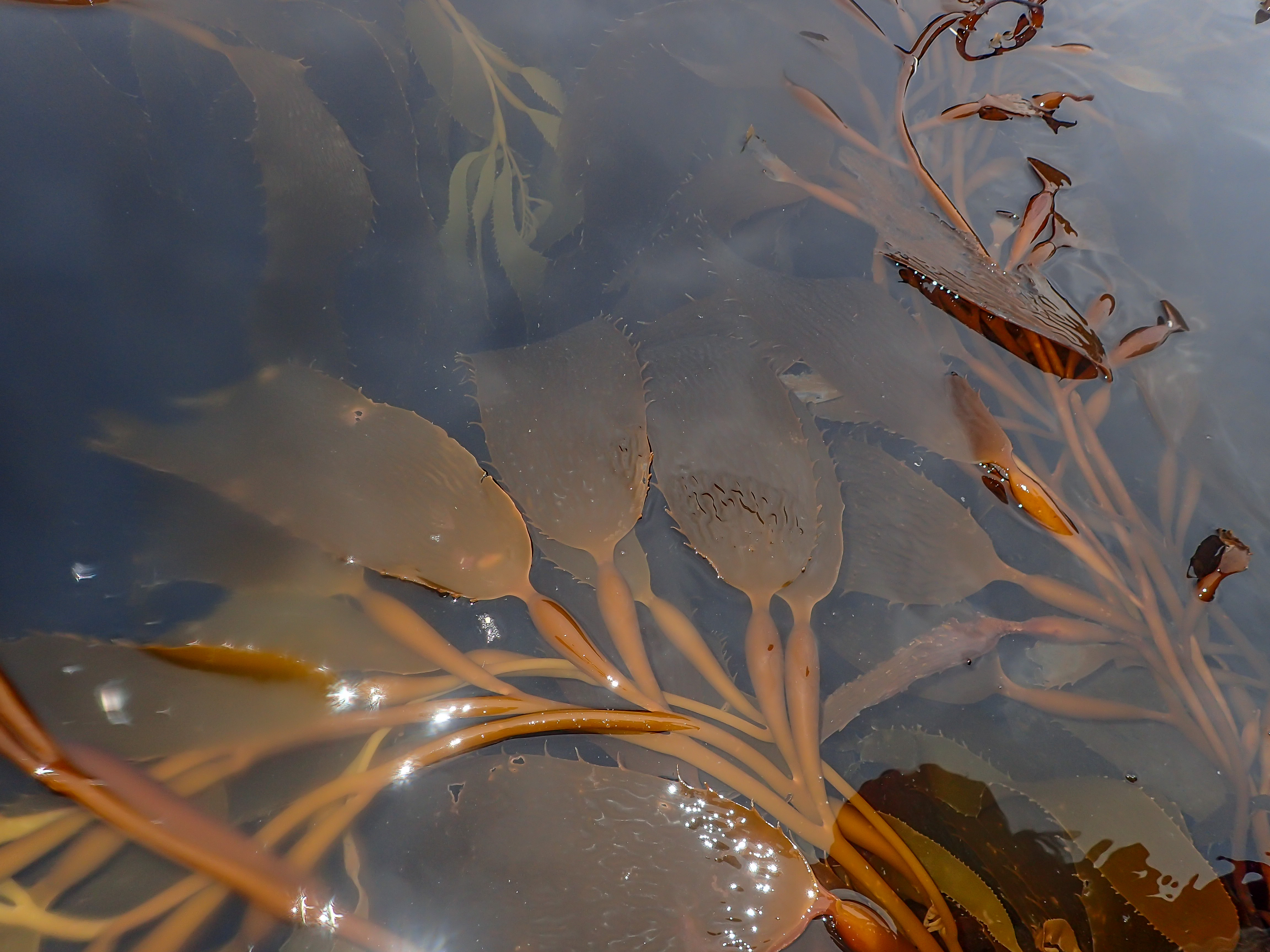 Some of the kelp beds were huge. We had to lift the prop and paddle through. Fun.