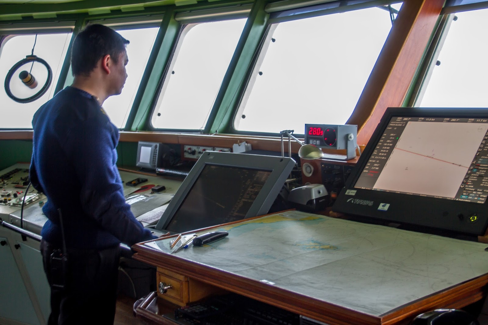 Then I sat down again and whales were sited – so up to the bridge I go to watch and spot. Humpbacks, a distance away. The Captain spun the ship and off we went, but the whales waved their tails and went deep.