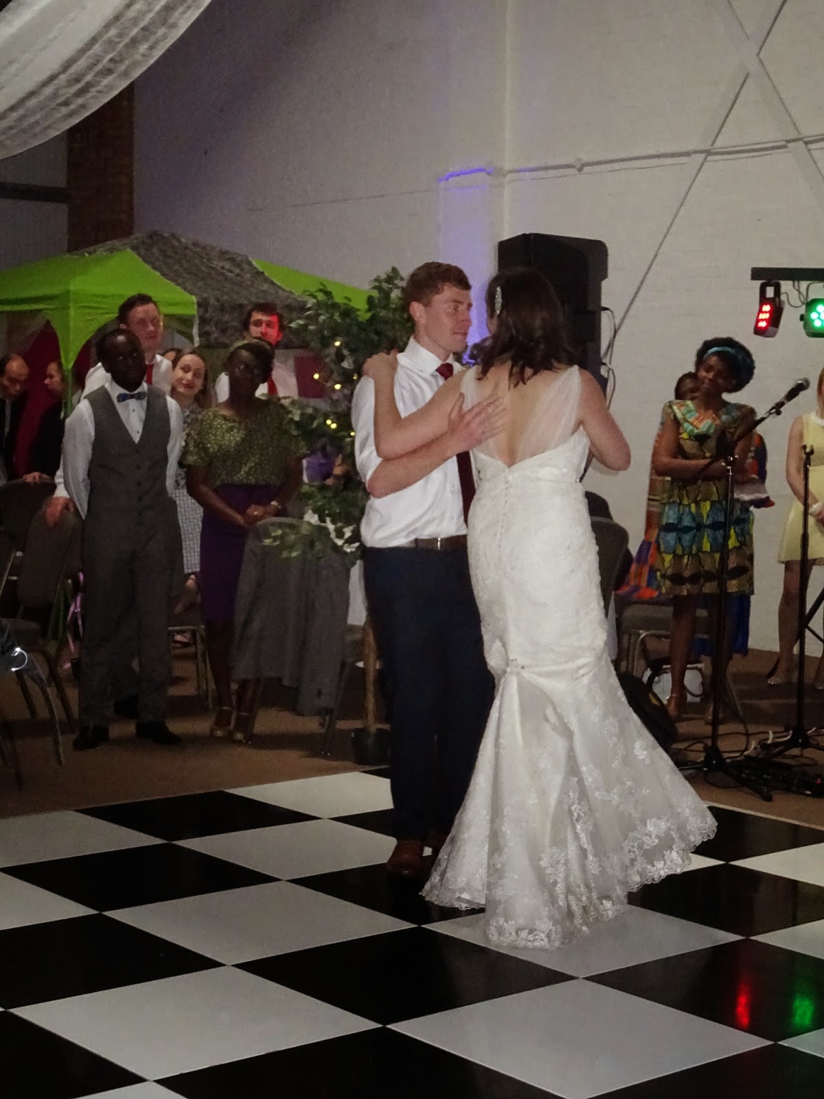The wedding was lovely. Celia looked awesome. Richard did too! The room looked very trendy, light industrial with the soft lighting, fabrics and all. Everyone danced the night away. We had fun.