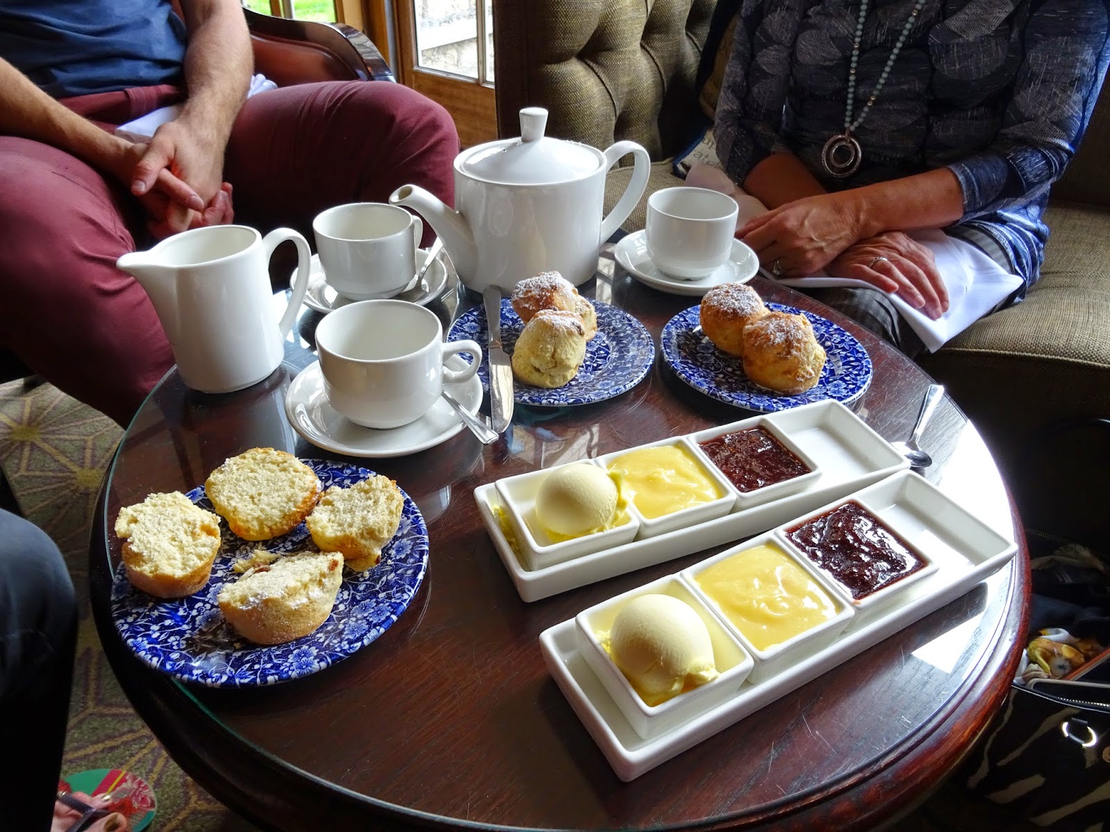 Then afternoon tea – or ‘cream tea’ was with scones cooked fresh when we ordered them, and jam, lemon curd and clotted cream. And of course bottomless pots of many different teas. Lovely!