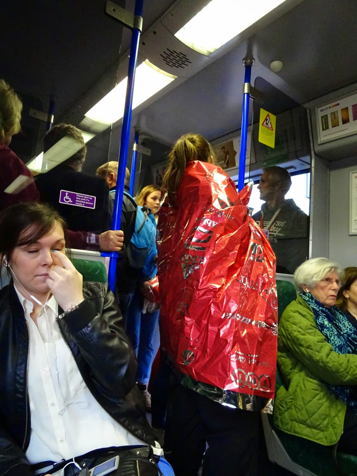 London Marathon was on this day and the trains – both the Tube and the country (Overland) trains were full of marathon runners. There were 38,000 runners so it made sense. Heaps were wrapped in foil blankets for their trips home. One lady was in my carriage, with her support team of about 10 family, their champagne and all their fun. She came in the top 28,000. Brilliant. She ran 42ks. When we arrived at her stop about 50 min out of London – she couldn’t walk at first.