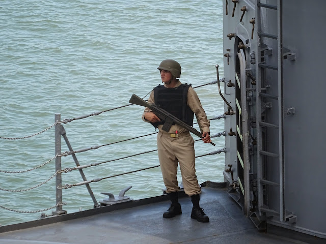 There was a naval vessel tied up next to us – with a guard on duty with a big gun!