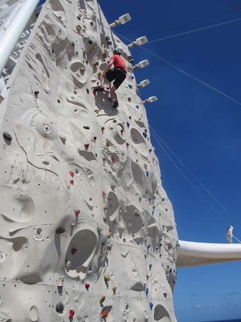 Well, sleep and relaxation after a very early start. Dexter, the head of sport and activities had organised a rock climbing championship. 8am on the last sea day. And when you think about the demographic of people that would want to enter a climbing comp, 8am on a sea day may not have been the best time. Dexter was a dick though! So we all crawled out of bed, dressed and rushed up to watch Chris climb like a champion and win this thing. And win he did! Pity no-one else got out of bed! He was the only entrant.