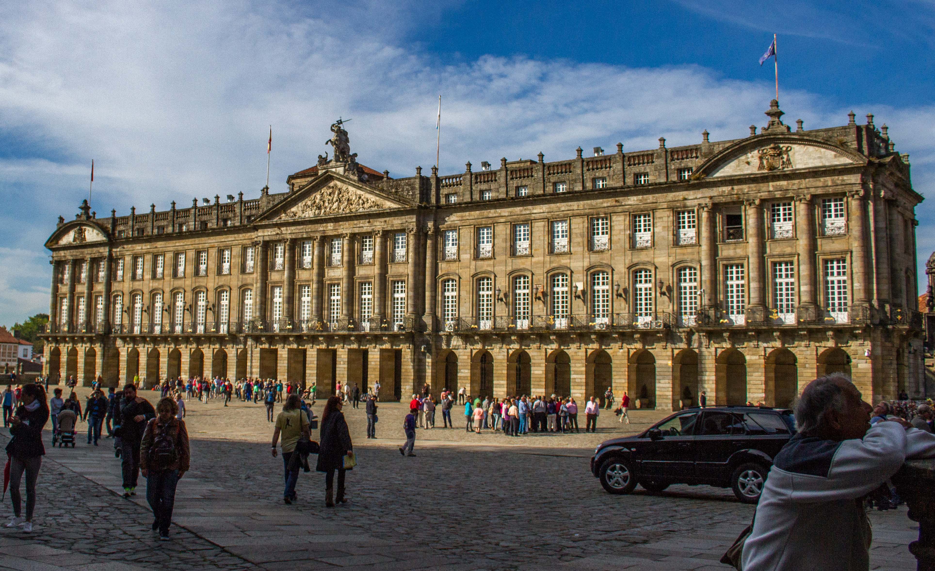 The main square is the end of The Camino de Santiago AKA the ‘Way of St. James’. It is the pilgrimage route also known as the Pilgrims Way. There are nine variations of the walk, all finishing at the Cathedral of Santiago de Compsstela in Galicia.